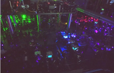 图1:(a)冷镱原子光钟系统实景图;(b)冷镱原子光钟正在运行