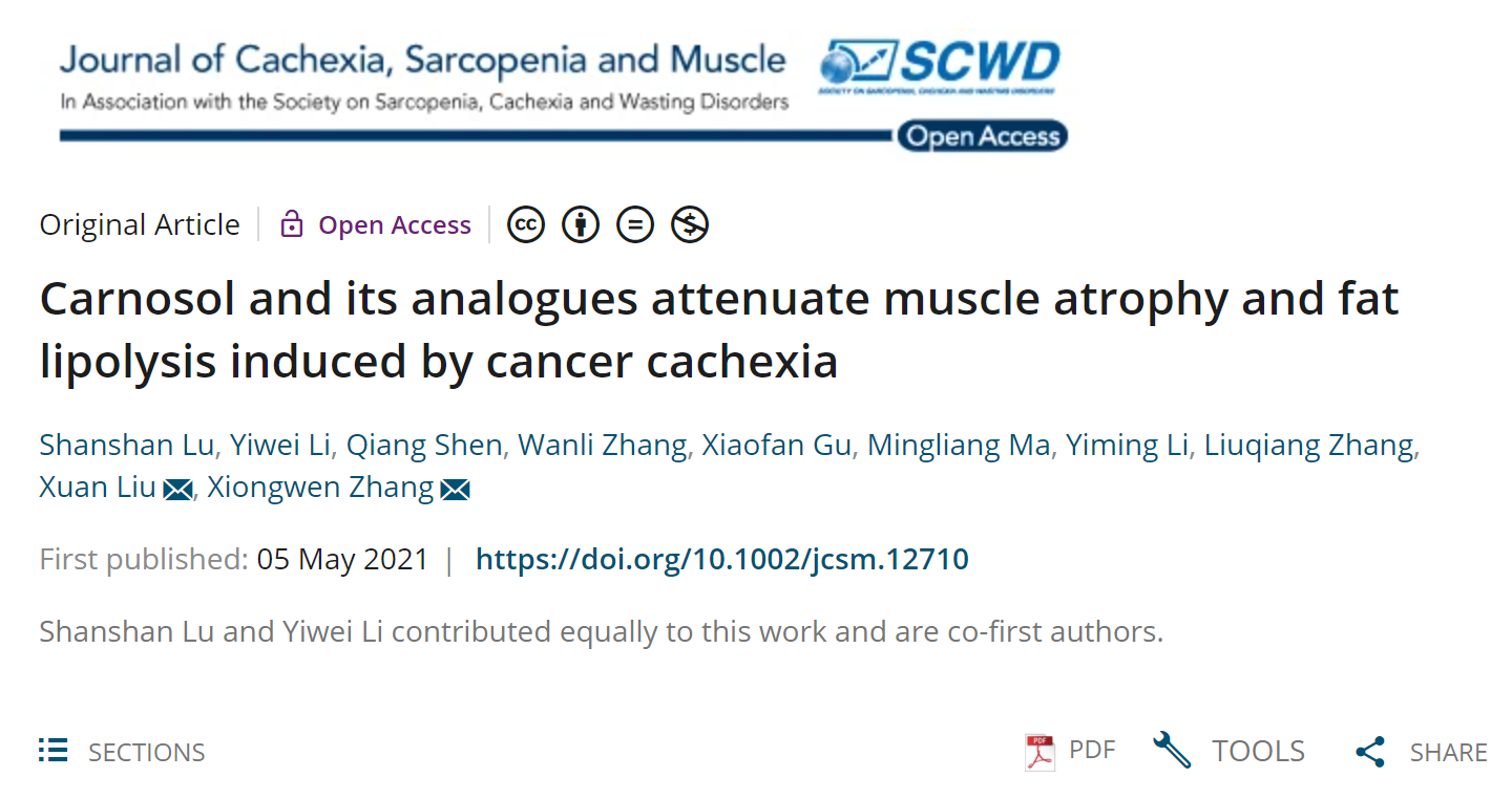 本项研究使得CS及其类似物有可能成为临床治疗肿瘤恶病质的候选药物,相关工作已申请三项国家发明专利 (202010089693.1;202010088733.0;202010088747.2)。同时,相关作用机制为进一步药物研发和临床治疗提供了理论支撑。3245澳门新莆京硕士研究生卢珊珊和李奕伟为论文共同第一作者,章雄文教授为通讯作者。研究工作得到国家自然科学基金(81872496)和上海市科委(20S11902200)的资助。