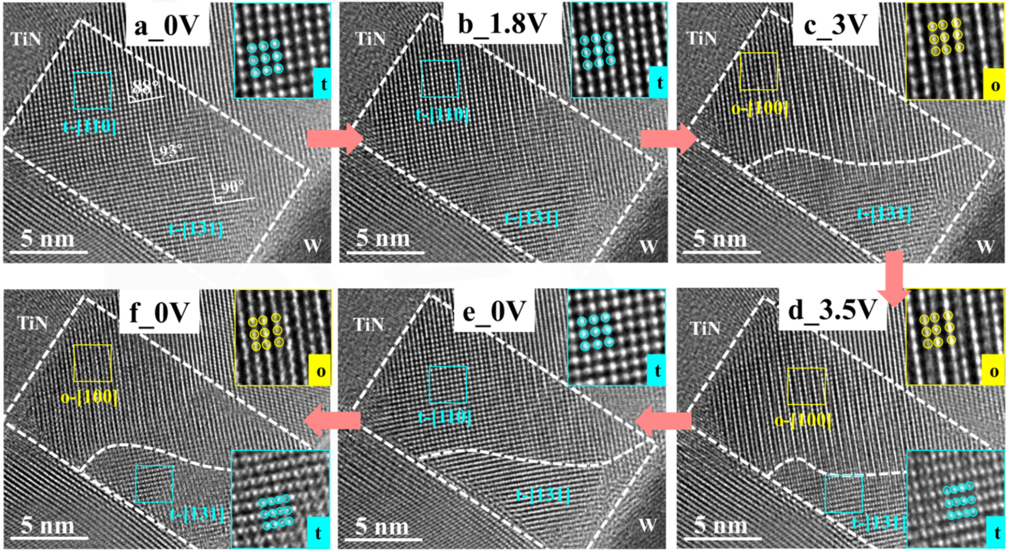 该项研究工作利用球差电镜聚焦于铪基铁电电容结构,从原子尺度出发,在外加电场环境下,原位动态观测到电容结构中铁电极化相的形成。在高空间分辨率的环境下,首次从实验上获得了最直观、确凿的动态相结构转变证据,建立了氧化铪基铁电体系微观结构与宏观性能之间的关联机制,从而为材料和器件的结构调控与性能优化奠定理论与实验基础。