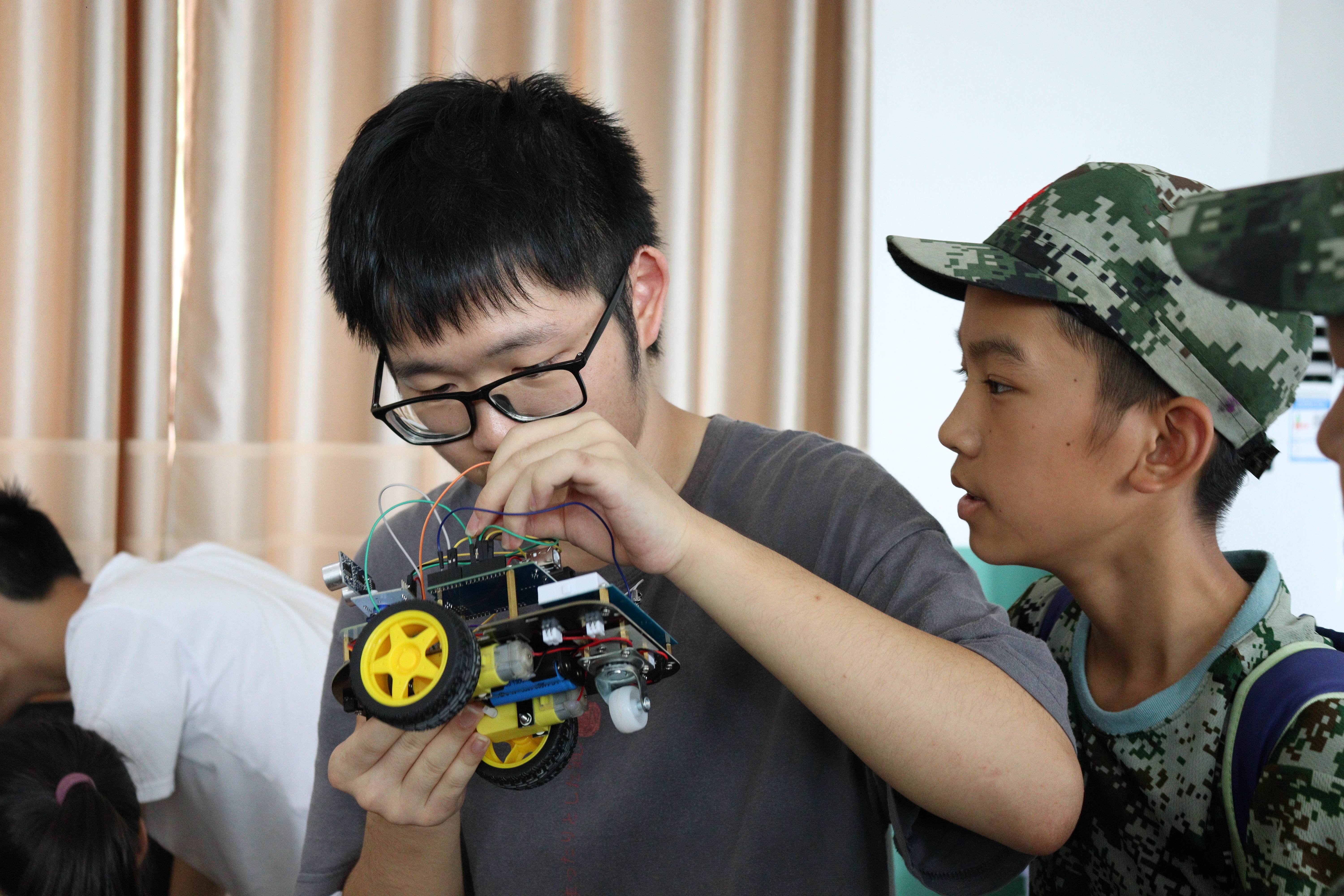 值得一提的是,今年的创客夏令营在给当地中小学生上课的同时,还在当地教育主管部门的指导和协助下,积极吸纳了当地中小学的数十位创客教师共同参与。在“授人以渔、教学相长”的理念下,团队希望通过当地创客教师的力量,带动当地整体创客教育水平的提升,让优质创客教育资源辐射和惠及更多学生。