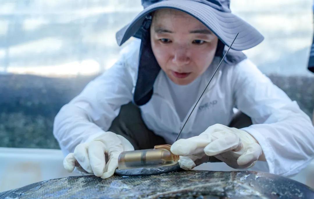对最大和最健康的部分海龟安装了卫星跟踪设备(陈珉 摄)