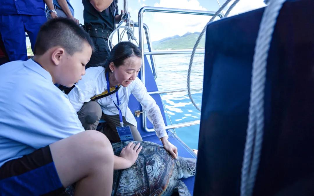 这次,陈珉团队参加了这99只海龟的放归工作。放归前,陈珉团队和海南师范大学、海南热带海洋学院合作对这些海龟进行了健康检查,野放海龟筛选,对放归的个体进行标识。8月9日,他们乘坐放流船前往外海,见证这些健康的大海龟回归大海。