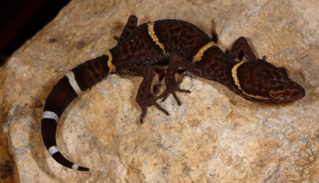 刚孵化的睑虎幼体,与成体一样有横条纹(何祝清 摄)