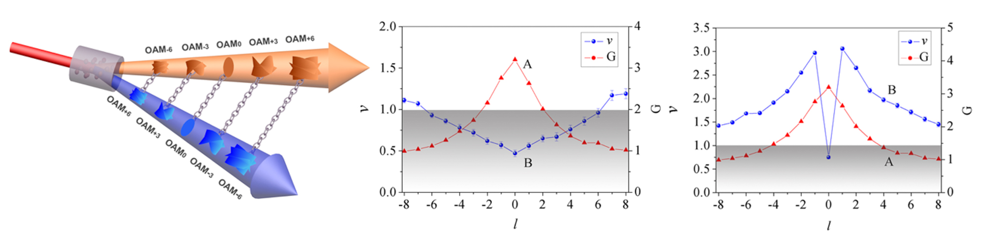 为LG模式对应的光学轨道角动量拓扑荷数,Pr和Conj代表两个孪生光束通道。该团队发展了基于LG模式的量子纠缠探测方案,并利用这一探测方案成功在实验上验证了这些对应模式之间的量子纠缠特性。同时该工作还验证了系统中