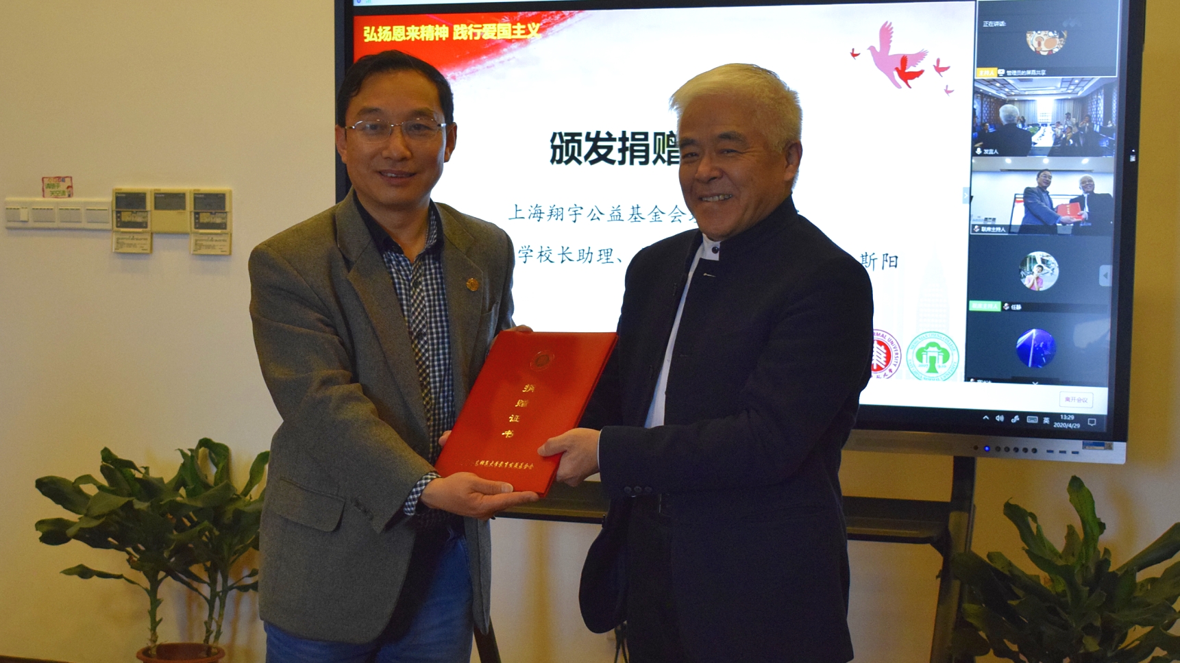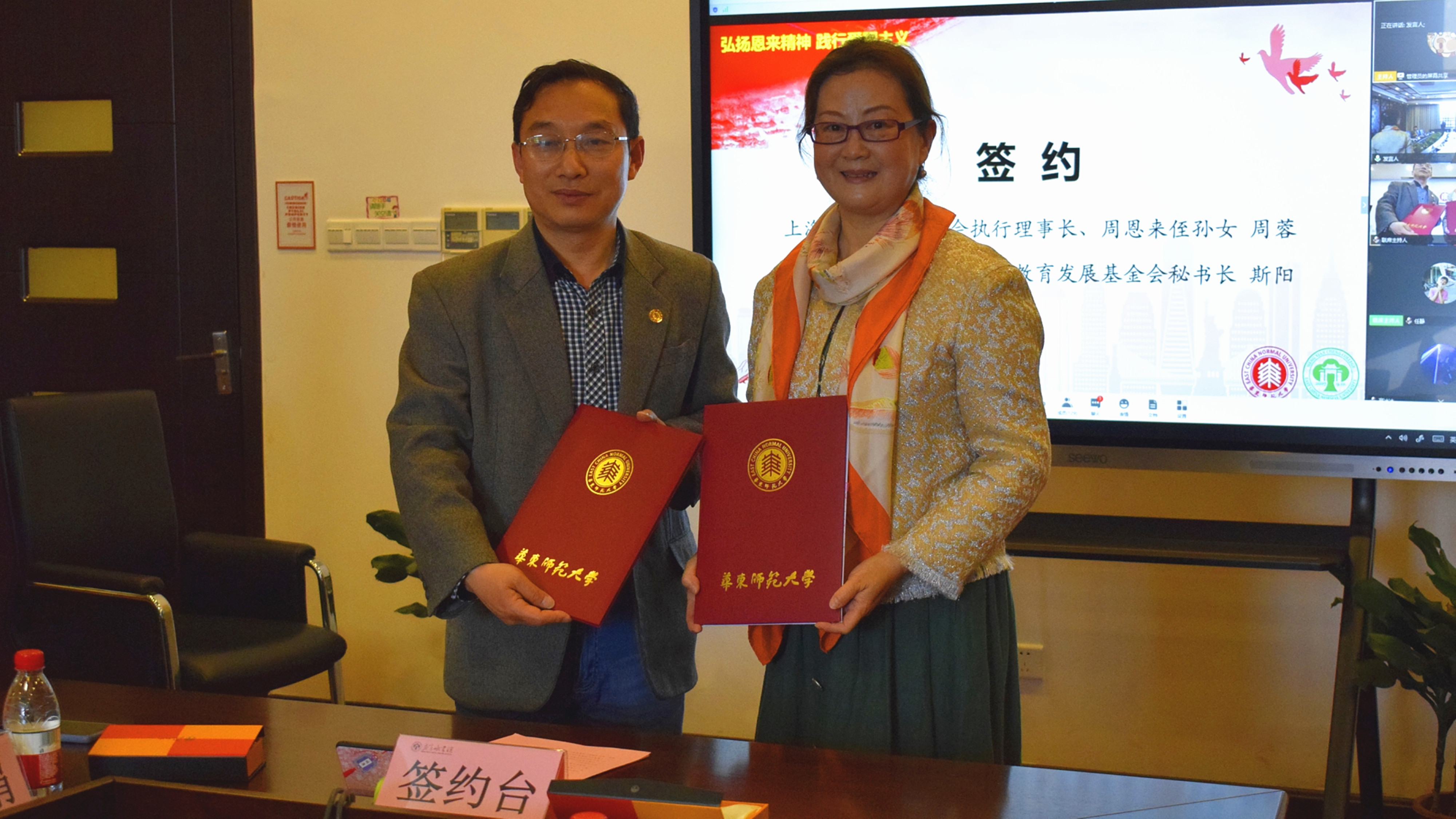 3245澳门新莆京校长助理、校基金会秘书长斯阳与上海翔宇公益基金会执行理事长、周恩来侄孙女周蓉签署捐赠协议