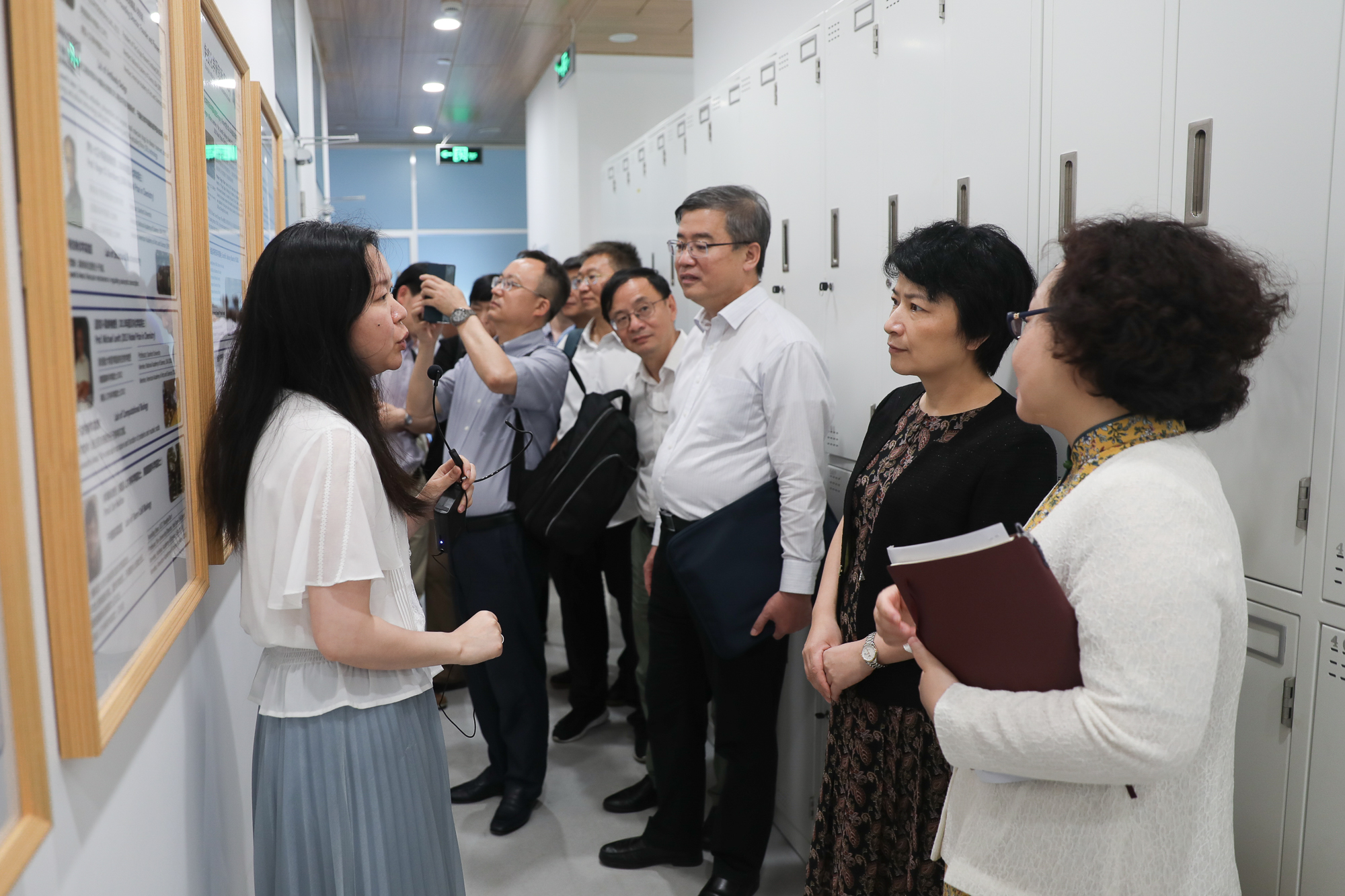 在实地调研环节,华东师大一行先后来到免疫化学研究所人字楼临床研究协同实验室、信息学院 MARS实验室、物质学院软物质微纳加工实验室,通过与相关单位负责人的交流探讨,了解上海科技大学优势学科的前沿成果和服务上海、服务国家经济转型产业升级的实际成效。