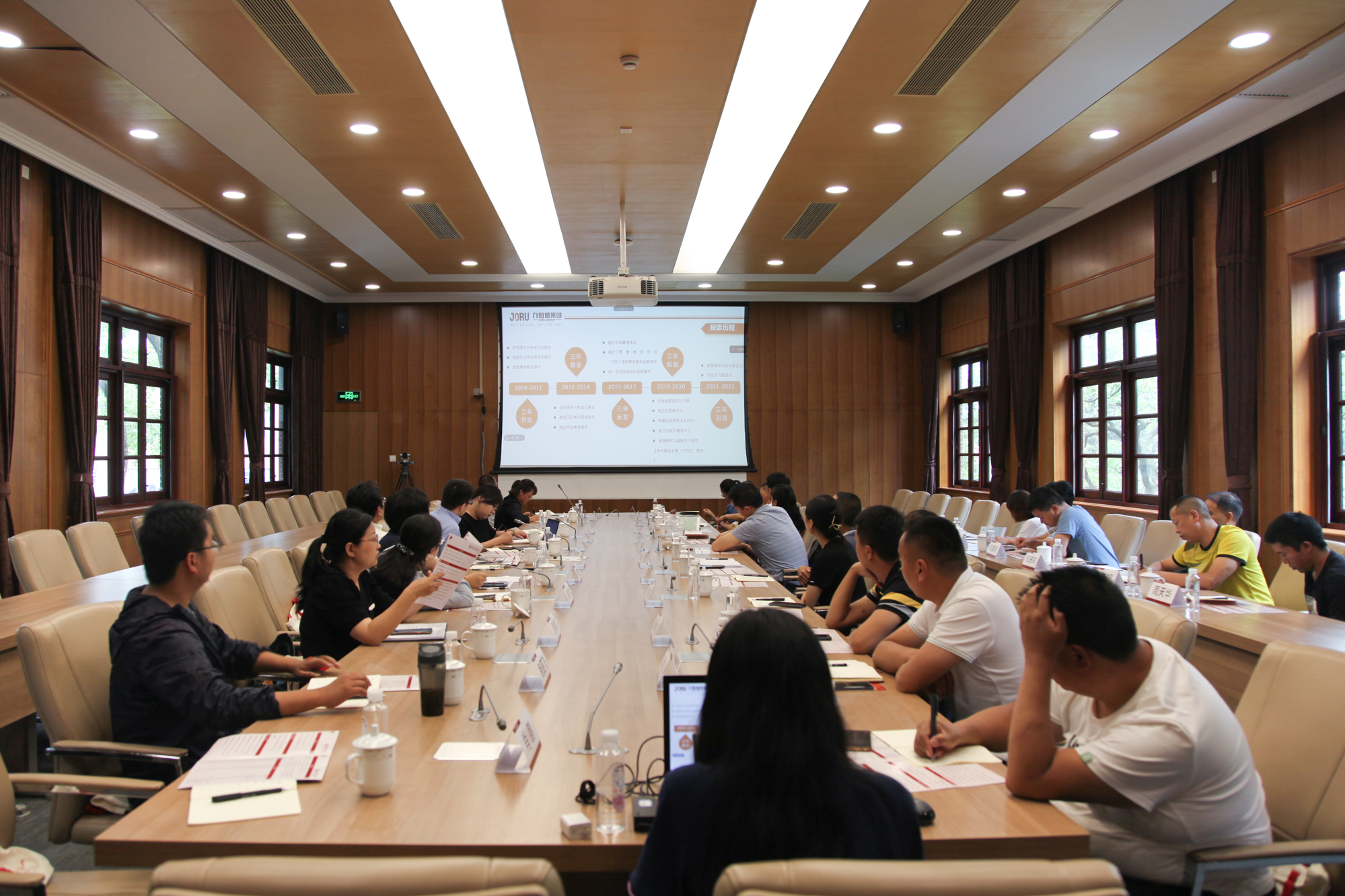 王秀娟通过视频会议线上进行九如城集团的养老经验分享,作为医、康、养、教、研、旅相融合的康养服务综合运营商,用标准化的运营体系提升服务品质,具备“二四六”的核心连锁运营特色,“二”是指全生命照护,全区域覆盖的两全模式;“四”是指“养老综合体-城市养老院-社区养老-居家养老”四级养老服务体系;“六”是指“医,康,养,教,研,旅六位一体”创新模式。