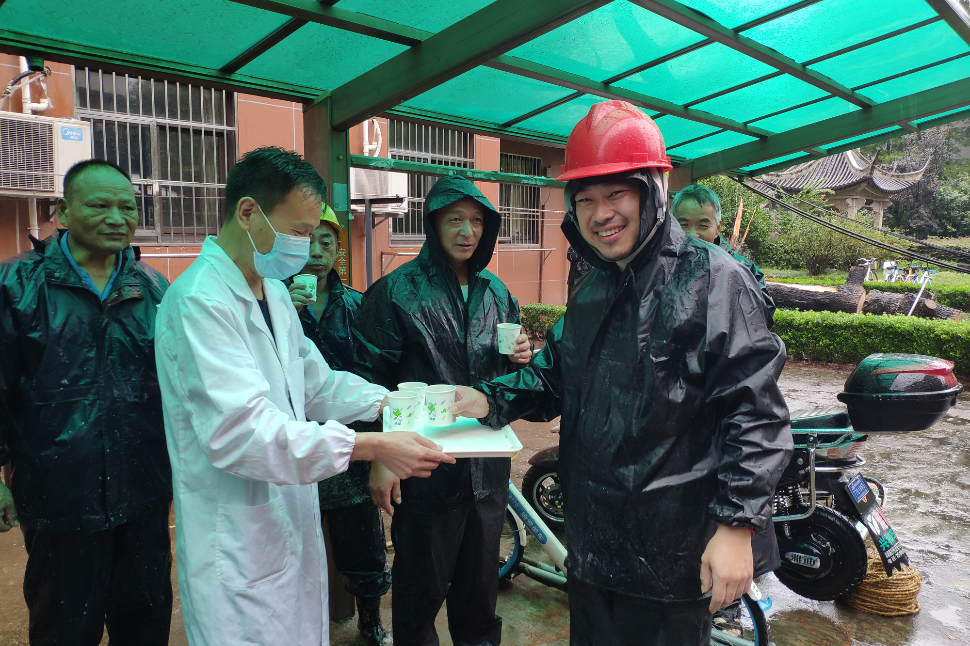 食堂为一线抢险人员提供了60份小点心和姜汤