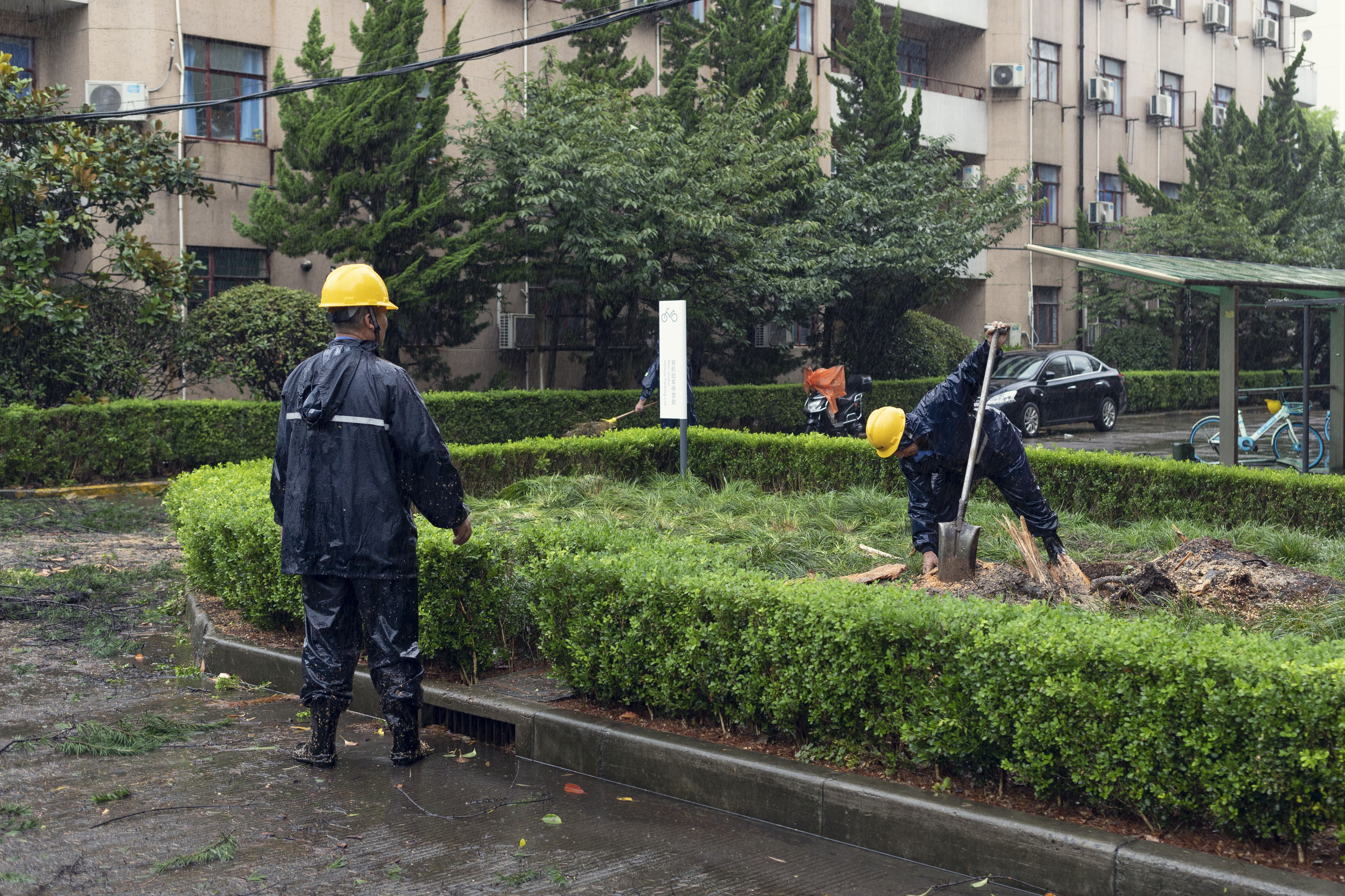 基建处先行启动响应预案,对在建工地进行安全检查,特别对塔吊、脚手架、防护网、户外宣传牌、围挡等受台风影响最大的设施进行重点检查,薄弱处督促现场整改加固,排除安全隐患。其中,闵行夏雨厅工程正值收尾阶段,施工单位提前将工地围挡拆除。