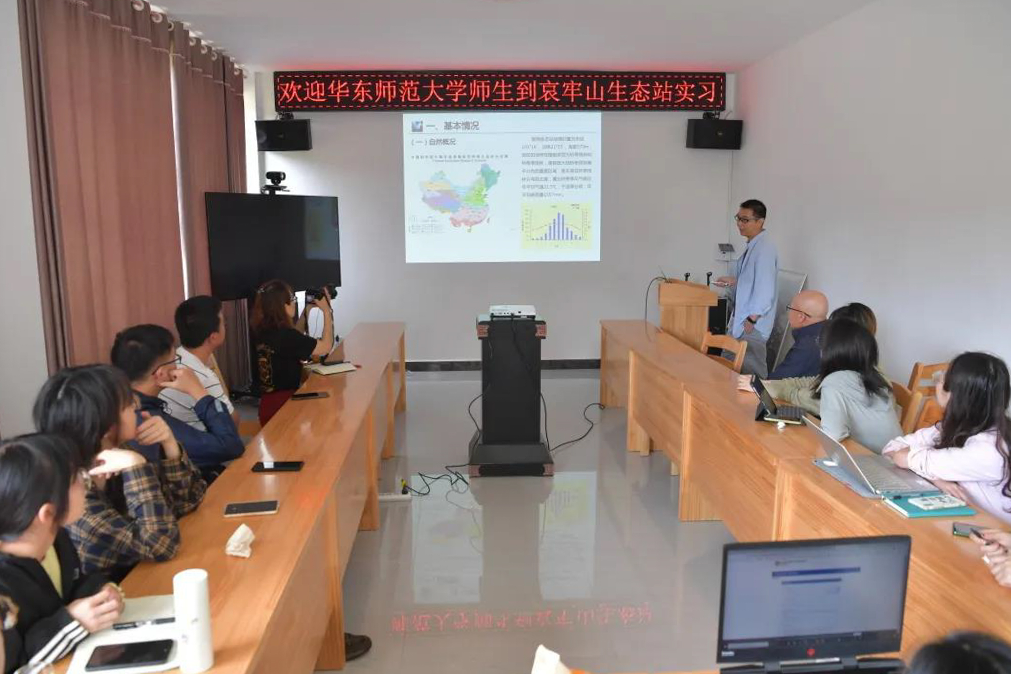 此次野外实习课程原定路线是自元江站前往中科院西双版纳森林生态系统国家野外科学观测研究站(简称:版纳生态站),开展为期5天的野外调查工作。但中途因故未能成行,最终改道哀牢山生态站开展实习调查工作。生态与环境科学学院特邀版纳生态站站长林露湘赴哀牢山为学生们作《云南西双版纳森林生态系统国家野外科学观测站》专题报告,带领大家云游版纳,了解版纳生态站的基本情况、运行管理、科学观测、科学研究、服务与示范、发展规划等。