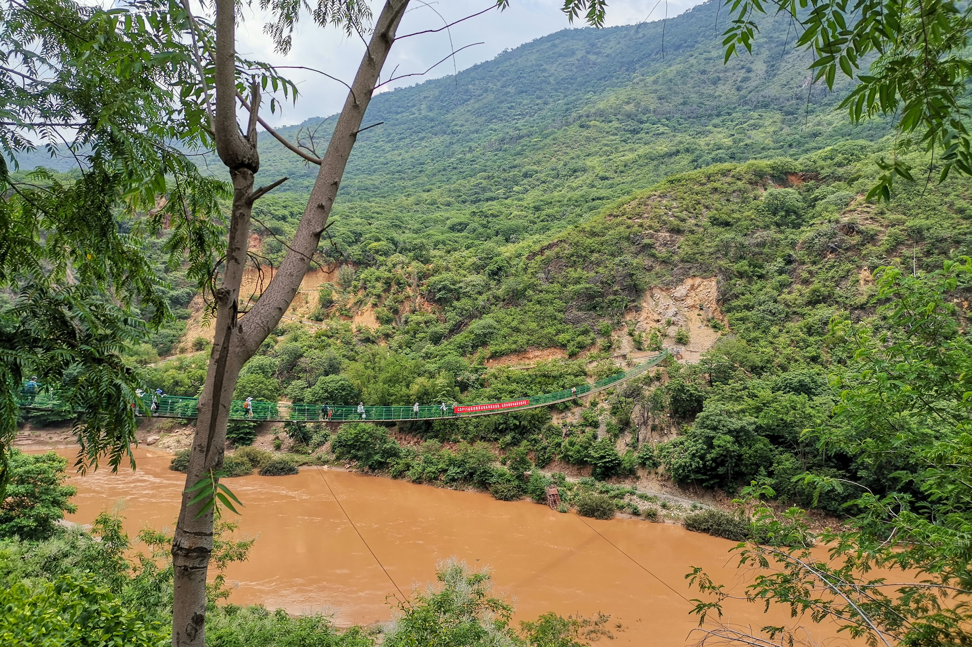 进入元江站的唯一入口——180米长的铁索桥