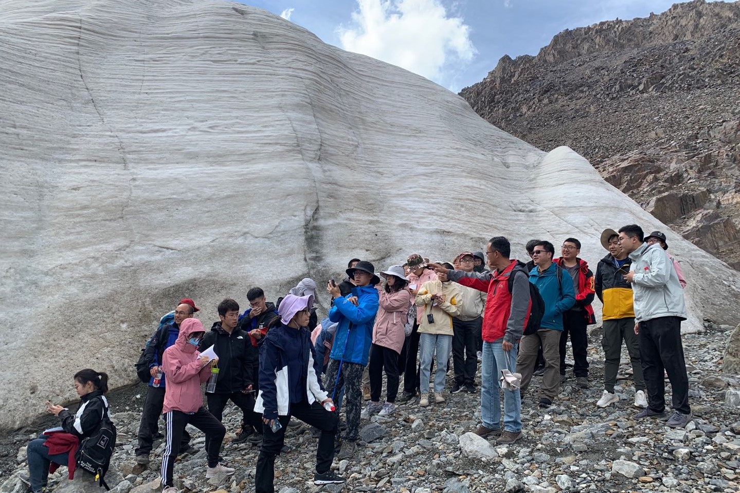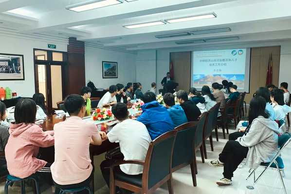 天山是世界七大山系之一,天山一号冰川位于新疆维吾尔自治区乌鲁木齐县境内,属于天格尔山北坡乌鲁木齐河的河源区。在中科院天山冰川站,负责人李忠勤研究员介绍了天山站的概况和人才培养工作并与在场师生进行讨论交流,帮助同学们深刻理解了中国大陆冰川的特殊性和重要意义,并了解目前正在进行的各项冰川研究及其涉及到的各类技术和原理。