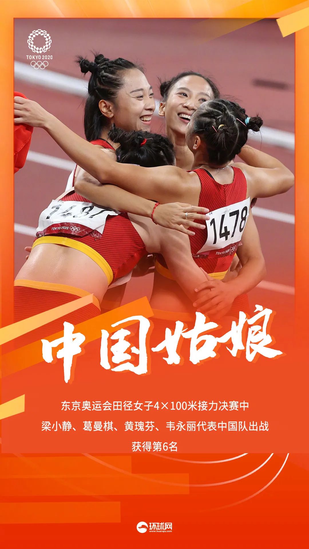 东京奥运会田径女子4×100米决赛,由梁小静、葛曼棋、黄瑰芬、韦永丽组成的中国队获得第六名!