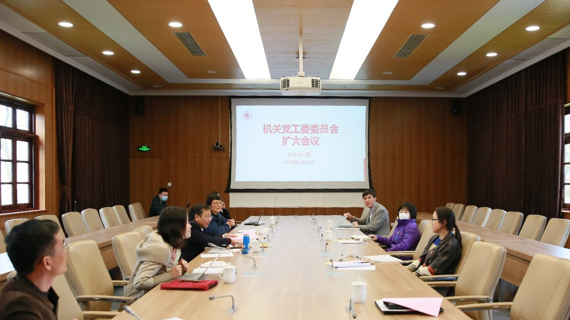 3月24日上午,2019-2020学年第二学期首次机关党工委委员会扩大会议以现场加视频的方式召开。校党委副书记、纪委书记曹友谊,机关党工委委员,机关各基层党支部书记,机关各单位负责人和机关部门工会主席出席会议。会议由机关党工委副书记张军主持。