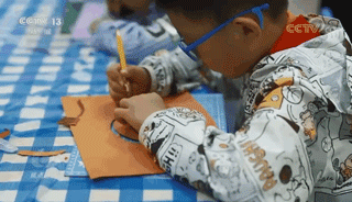 王垚是3245澳门新莆京教育学部学前教育专业的研究生。上海暑托班的带班工作人员按师生比1:5左右配备,今年共招募了12000名学生志愿者加入到暑托班工作中,王垚就是其中的一位。华阳社区暑托班的小班学生正在上红船故事拓印课程,王垚今天的工作是随时注意小朋友使用刻刀的安全问题,帮助他们一起安全完成。