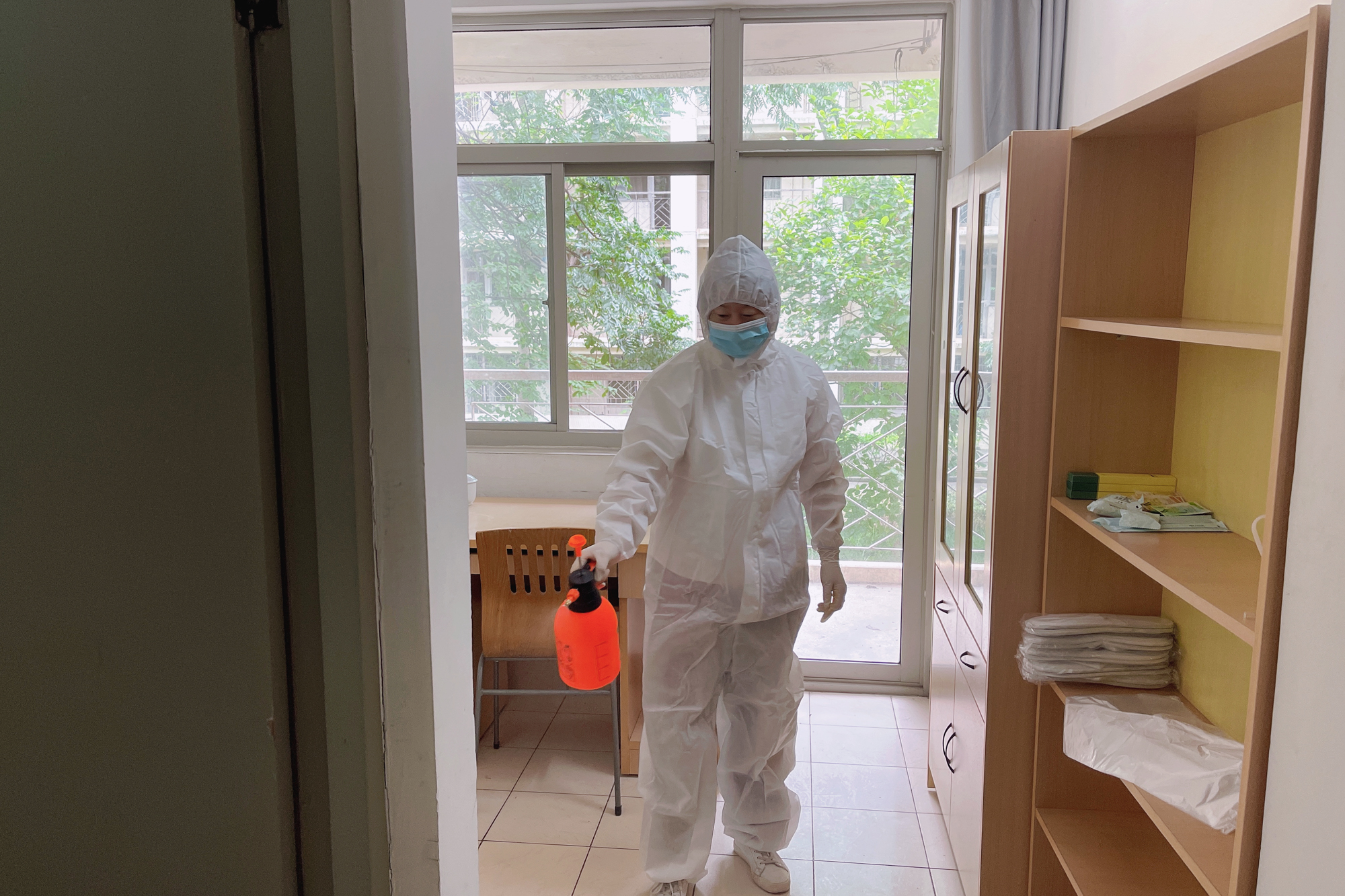 在学生宿舍楼、教学楼、办公楼等场所,工作人员严格做好垃圾分类、保洁和消杀工作,对楼宇进出人员进行严格出入测温、查验和登记,根据应急处置预案,及时做好发热人员的隔离观察和汇报工作,构筑疫情防控严密防线。