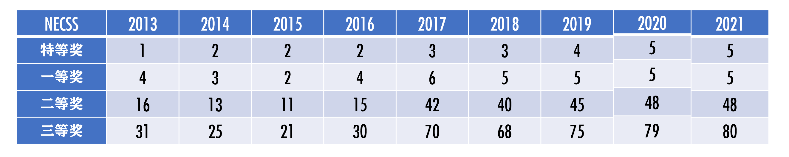 华东师大2013-2021年全国大学生英语竞赛获奖情况(数字单位:人次)