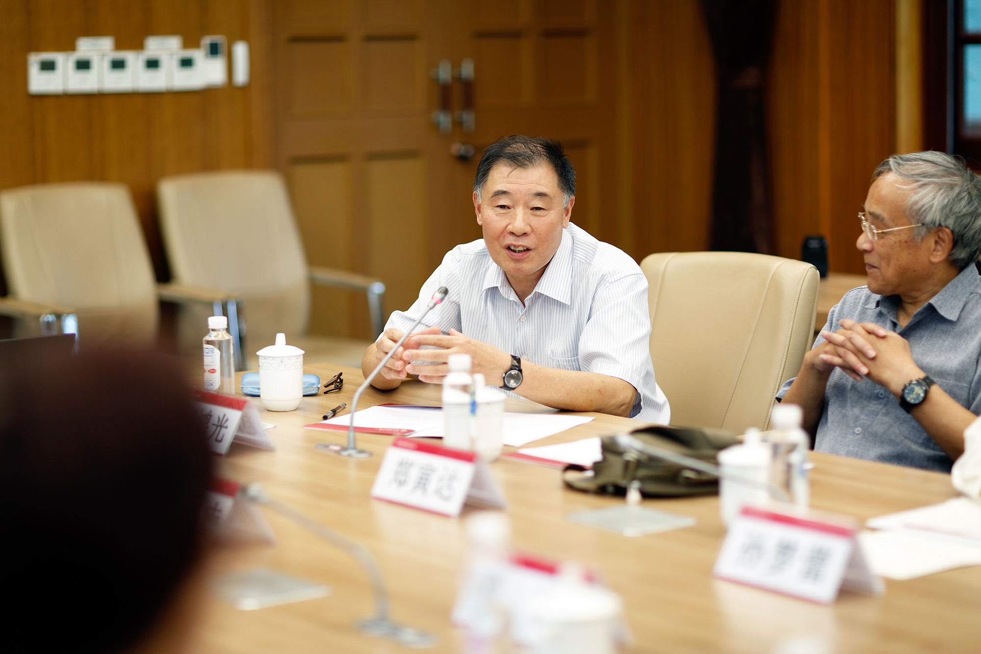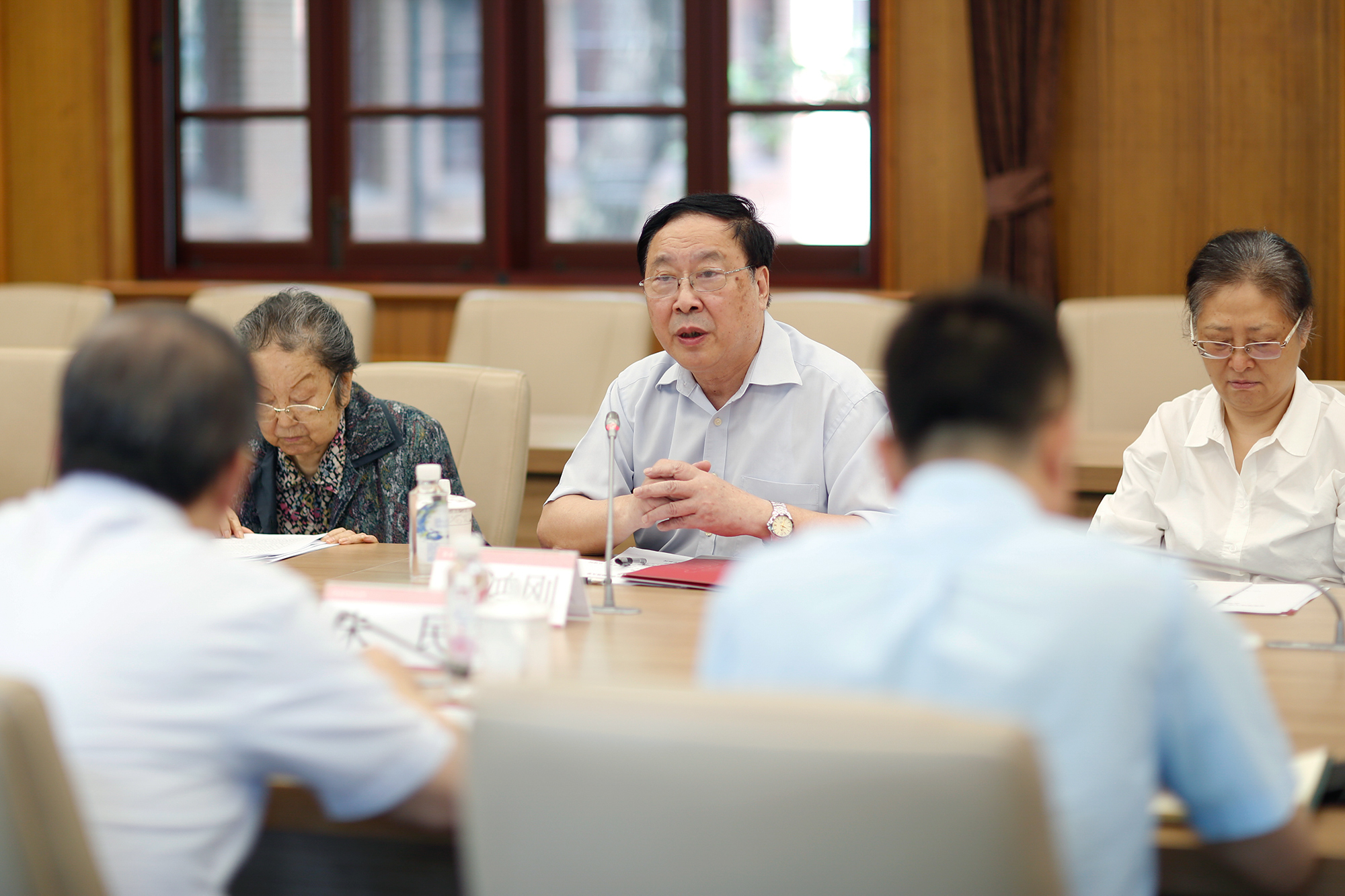 8月25日,华东师大党委书记梅兵在中山北路校区会见了来访的上海市老干部大学名誉校长陈铁迪一行。双方举行了交流座谈,华东师大党委副书记朱民主持会议。