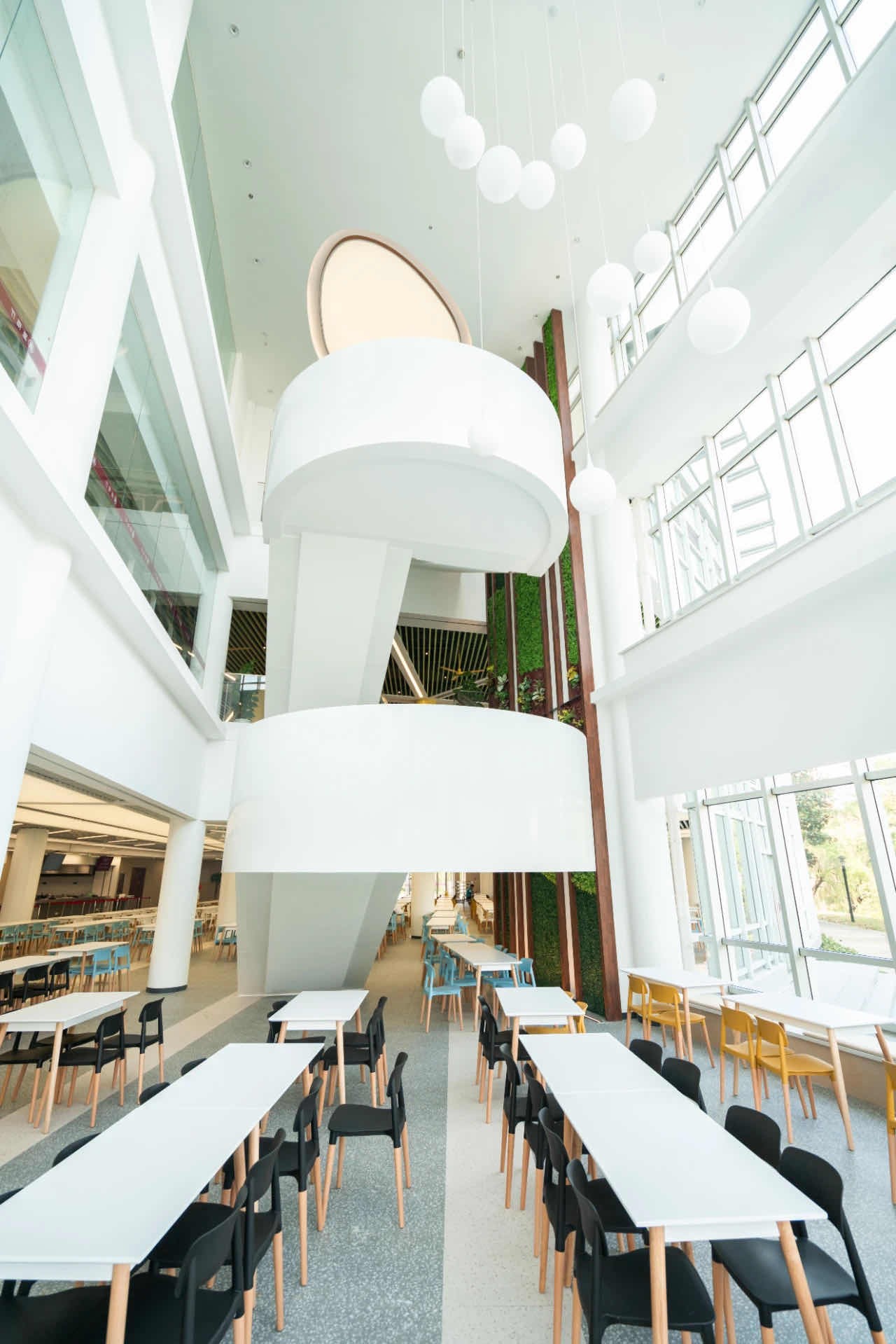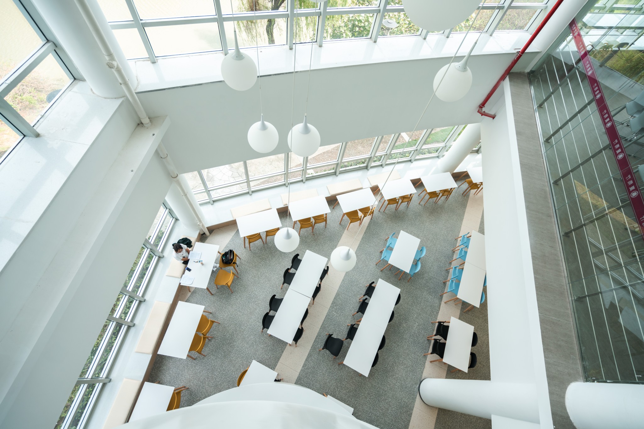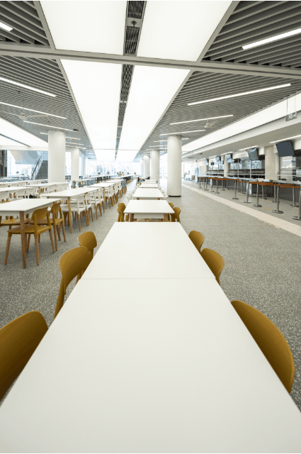 一楼餐厅明亮大气,满足师生基本餐饮需求。新增讨论区,为师生提供更多的学习和交流空间。