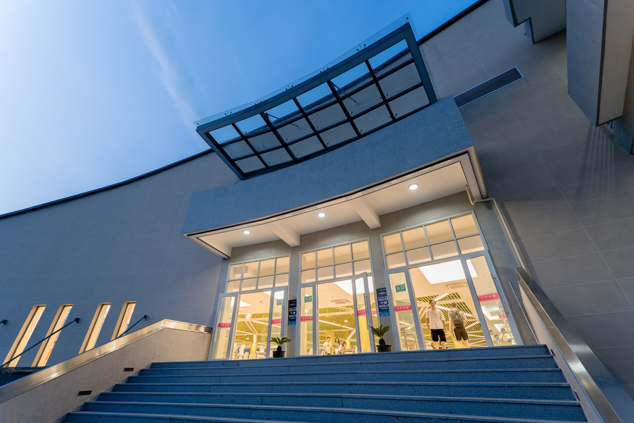 餐厅外墙主立面是此次改造重点,色彩以灰、黄为主基调,尽可能将外立面化零为整,体现整体感。材料则选用干粉饰面砂浆、仿清水混凝土及预拌饰面砂浆石材颗粒,提升外观的品质。