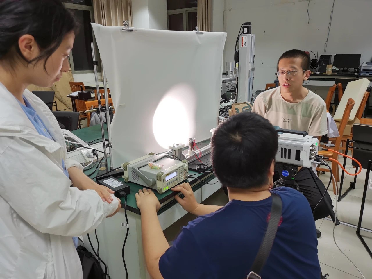 他以赛题中第9题“光须”举例,这道题源自于2020年7月《自然》杂志封面报道的研究,要求利用生活中最常见的肥皂膜使得通常沿直线传播的光线出现分叉现象,并解释背后的原理。同学们经过大量摸索,终于成功观测到了稳定的现象,并通过巧妙组合简易的实验器材,实现了与国外专业科研团队同样的实验效果,却大大降低了实验成本。