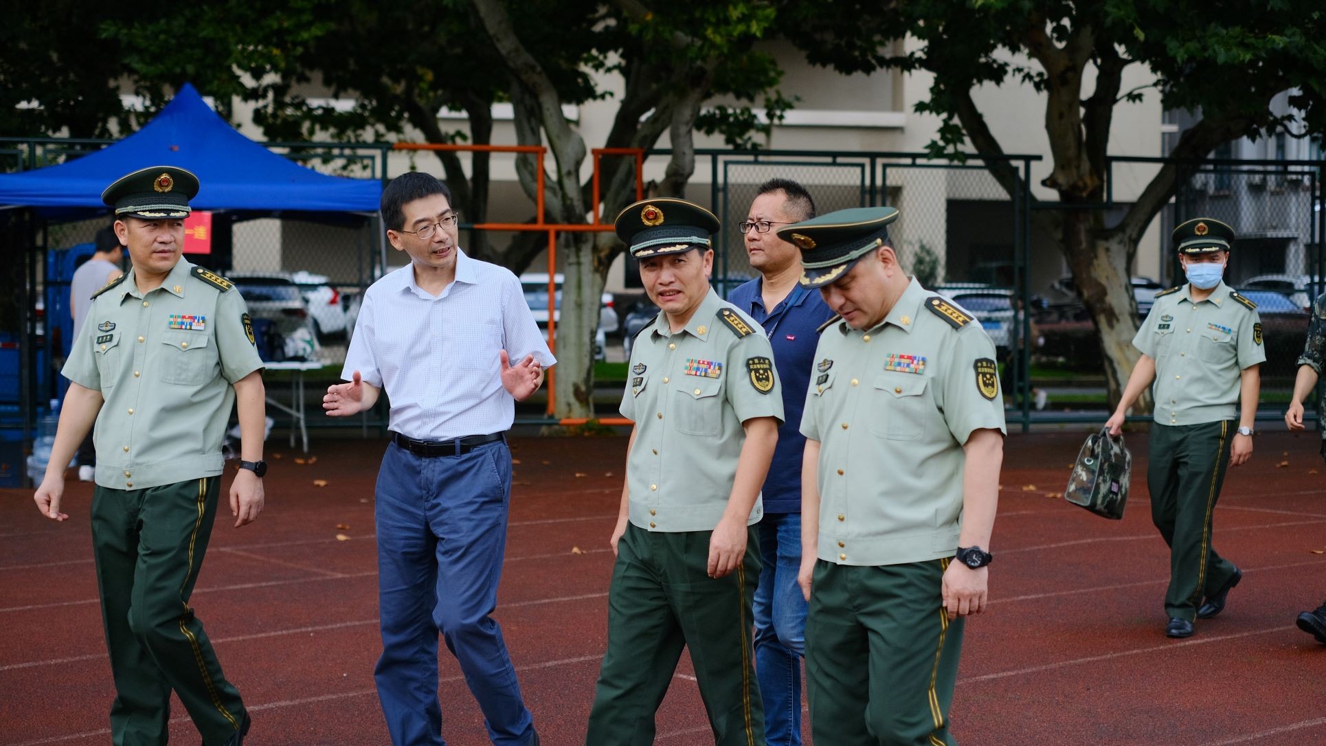 9月3日,3245澳门新莆京副校长顾红亮与承训部队领导座谈交流军训各项工作开展情况,并来到训练场地看望慰问正在军训的同学们。他向发挥了榜样示范作用的教官们表示衷心的感谢,指出军训是青年大学生的必修课,期待华东师大学子们能将身着迷彩时的精气神延续到今后的学习生活中,强健体魄、磨砺意志,恪守“强国有我”的青春誓言。