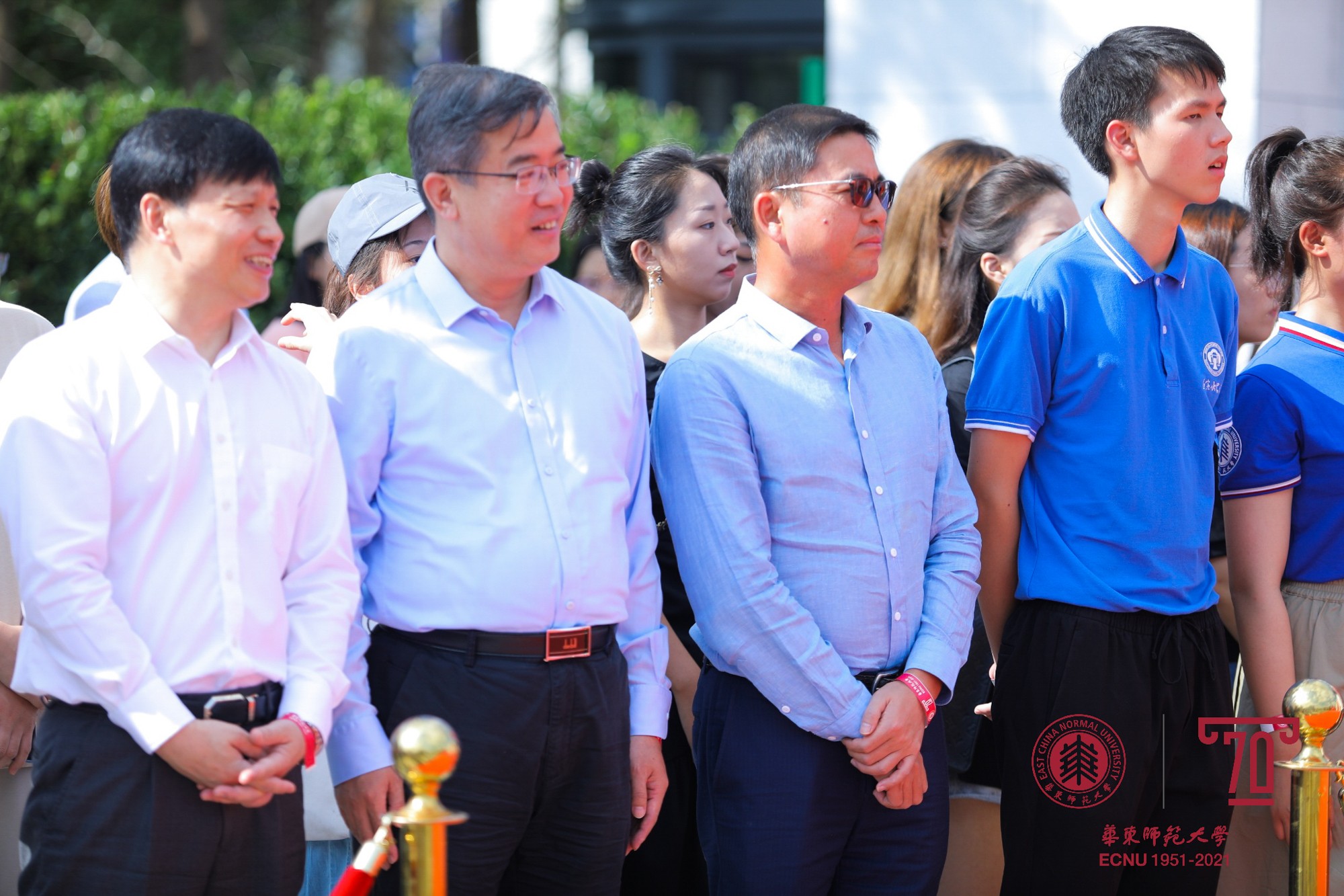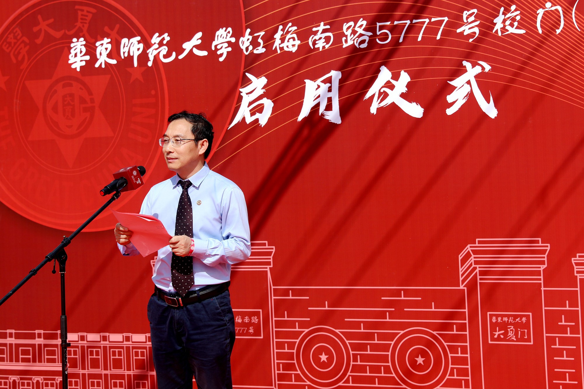 校党委副书记朱民、校长助理斯阳、闵行区吴泾镇党委书记金海民、大夏门捐赠人程静校友和师生代表一同参加了大夏门启用仪式。