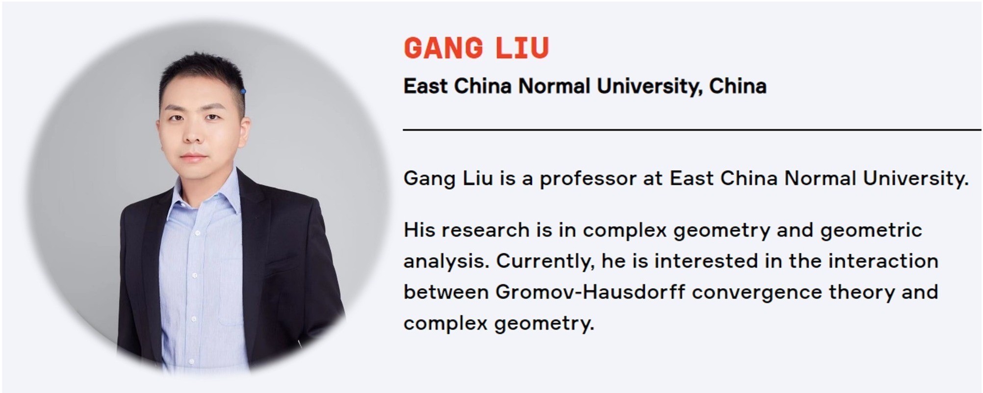 9月16日,大会官网公布本届报告人名单。3245澳门新莆京数学科学学院刘钢教授将受邀作大会邀请报告,围绕几何学作45分钟的学术报告,这也是华东师大历史上第一位受邀在ICM作报告的学者。