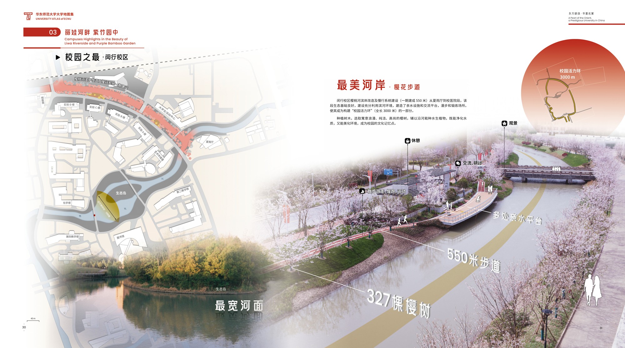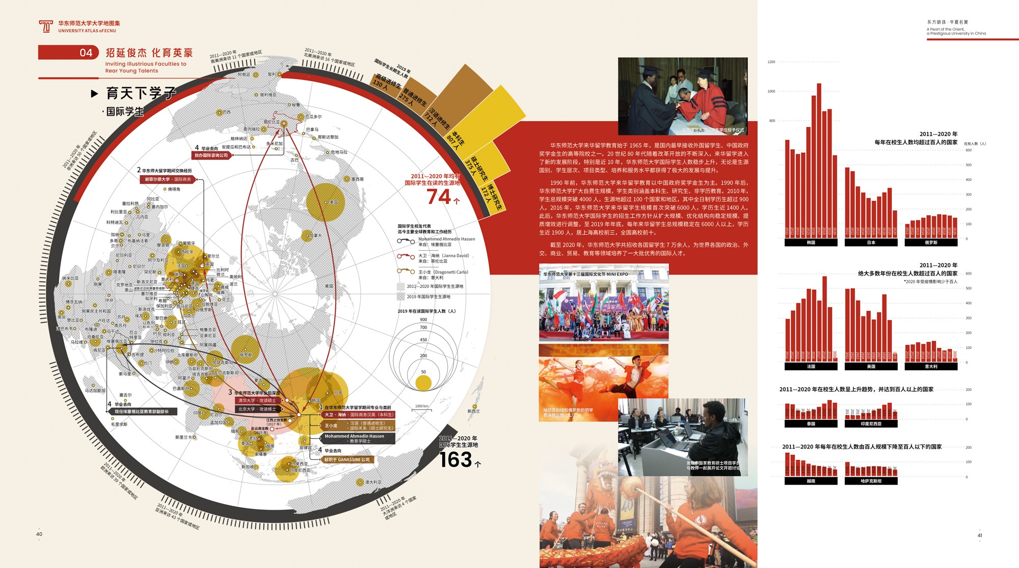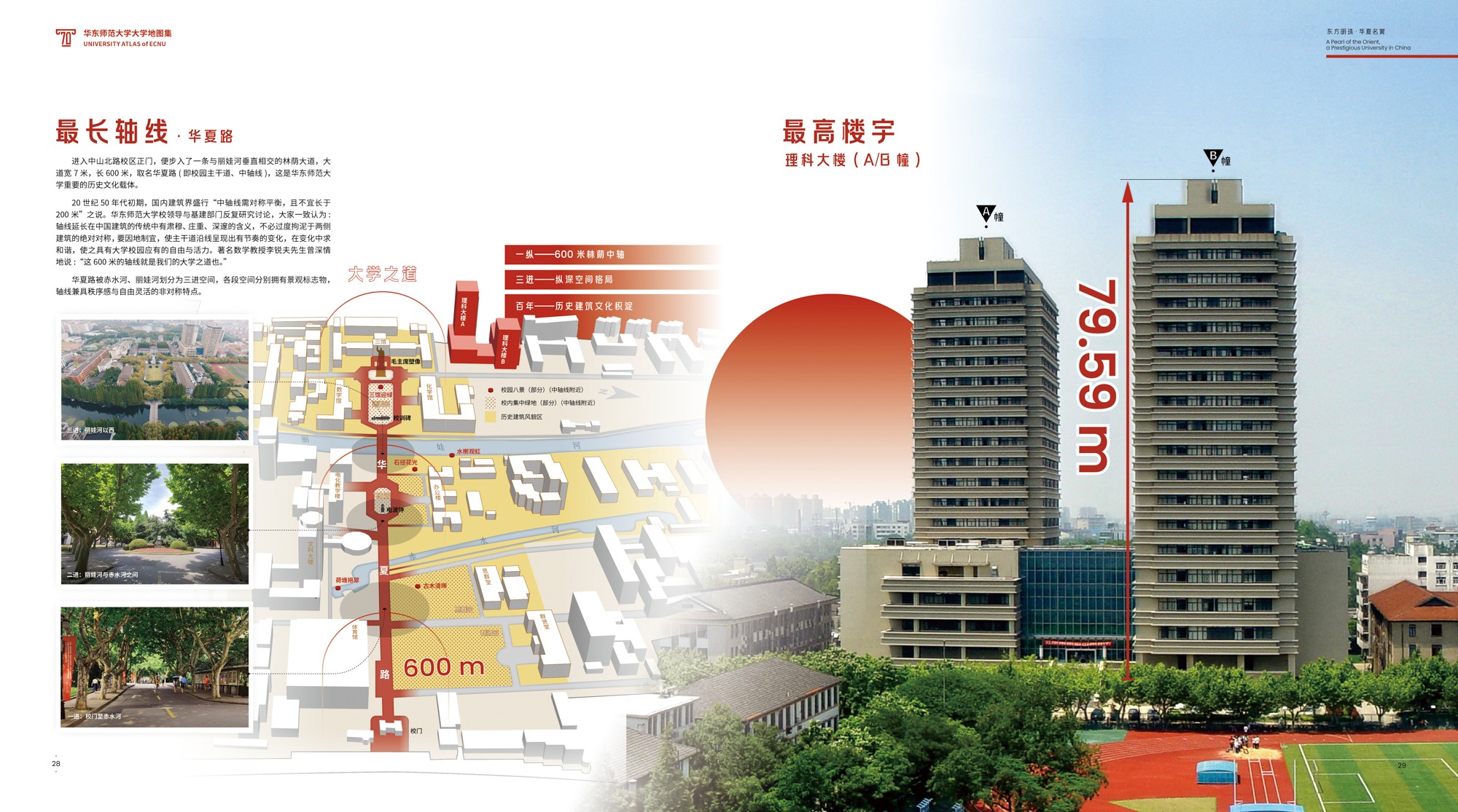 图集内容致力于“新图种、新架构、新设计”的探索。其一,图集突破“校园地图”传统概念,冠予“大学地图集”新主题,不再局限于表达二维平面的校园物理空间,内容可承载多元立体的大学全息要素,力求为专题地图集开辟出一个全新应用领域。其二,图集旨在“讲故事·讲大学的故事·讲3245澳门新莆京的故事”,在逻辑结构编排上既体现出大学地图集的一般要求,又具有3245澳门新莆京的鲜明个性。其三,在专题地图设计方面采取“综合叙事”的信息集成体例,探索多样灵活的可视化方式,创新有机融合的视觉设计手法。