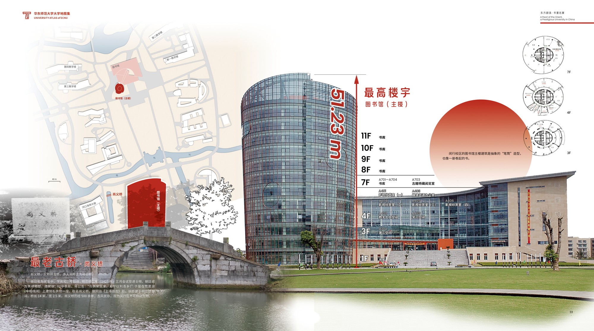 《地图集》主创之一、华东师大地图研究所唐曦副教授表示,这种“综合”表达系统,既是“空间的”,涉及全球、全国、上海和校园等各级地理尺度,又是“时间的”,跨越70载的历史回溯、当下呈现和远景展望;既是“素材的”,耦合地图、影像、统计图表、手绘图示、解说文字等不同表达形式,也是“视角的”,兼顾“横纵交叉”与“点面结合”,实现“上下贯通”与“内外联动”。