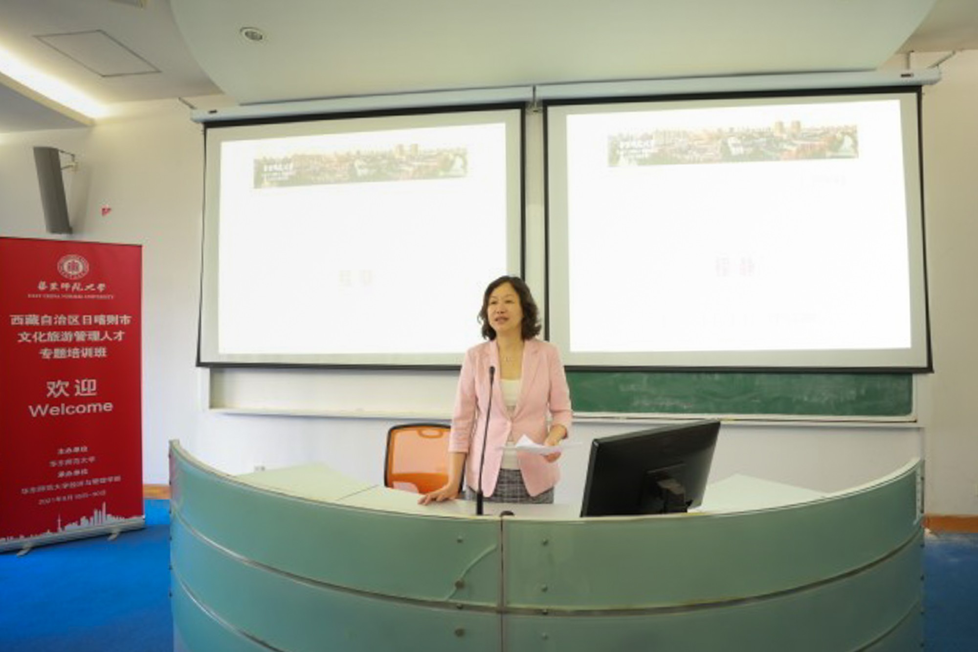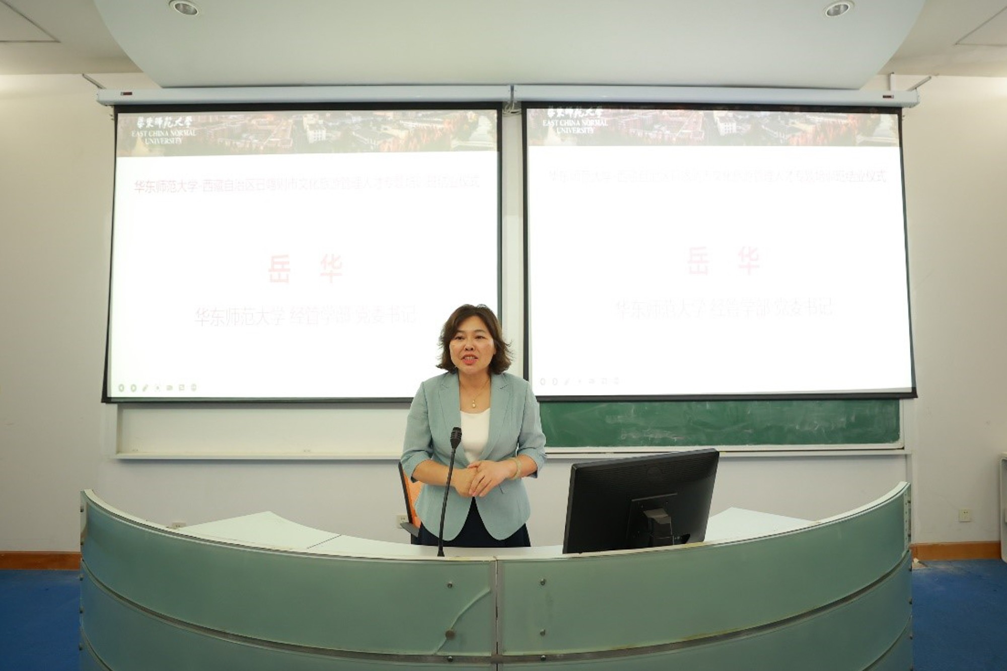 校党委常委、组织部部长程静在开班仪式上致辞,她首先代表学校向日喀则市文化旅游管理干部表示欢迎。程静回顾了华东师大长期以来的援藏工作,虽远隔万里,但华东师大早已与西藏人民结下了深厚的“山海情”。“探索创新理念,拓宽工作思路,提升实践能力,”她希望各位学员通过本次研修活动,学有所思,学有所获,学有所用,统筹区位资源与文化旅游管理,做好乡村振兴大文章,为打造更具特色的日喀则市文化旅游筑牢根基,作出更大的贡献。