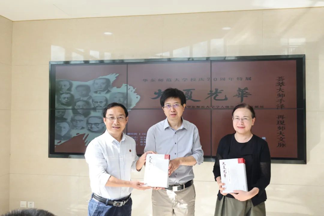 丁小明分别向孟宪承·刘佛年教育成就陈列室、大夏书院、光华书院捐赠了孟宪承、刘佛年校长手迹和《大夏光华》丛书