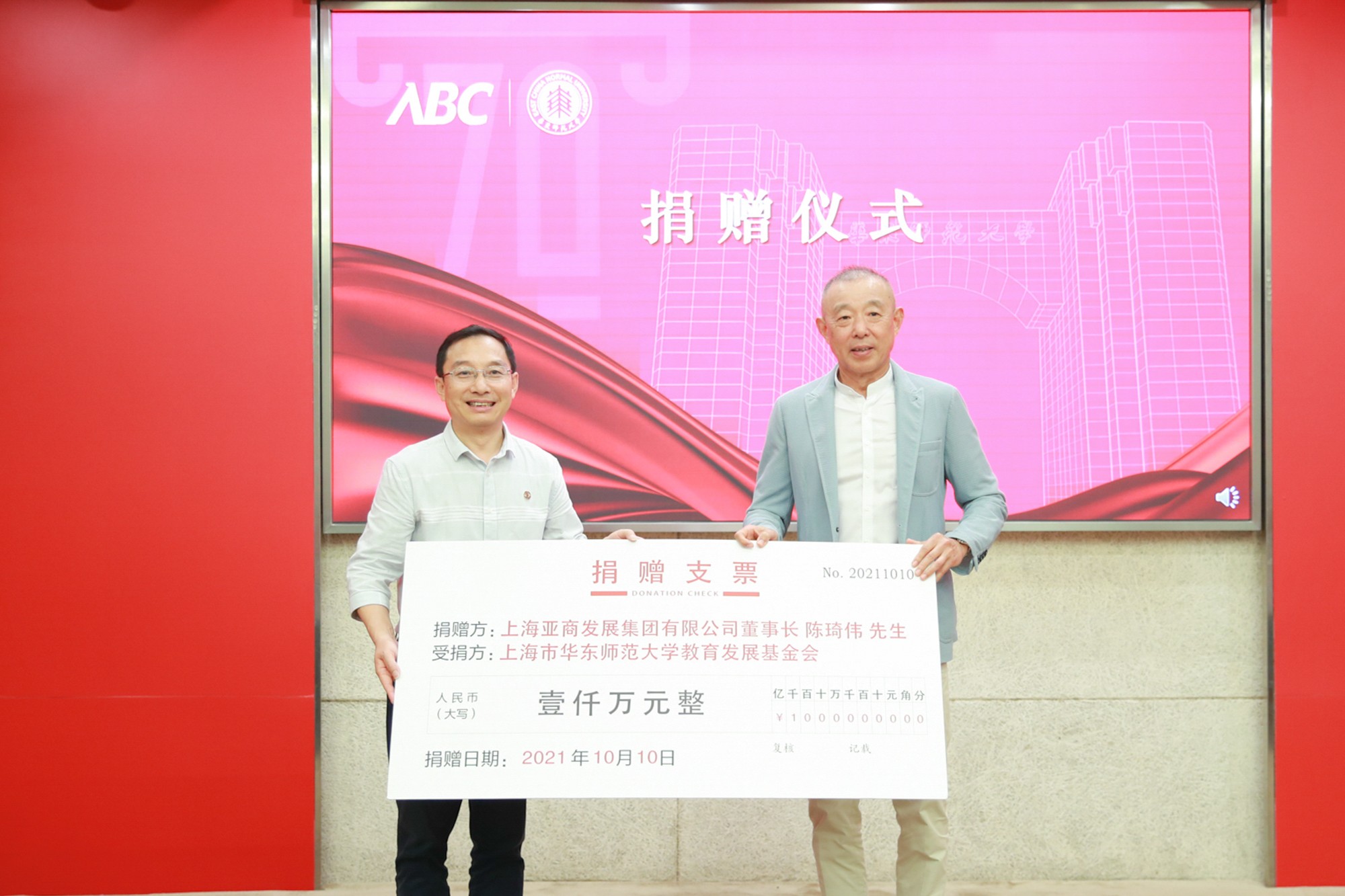 上海亚商发展集团有限公司和华东师大校友陈琦伟捐资一千万,成立金融科技研究发展基金,助力学校金融科技领域跨学科联合攻关与协同创新,为金融科技推动国家和地区经济高质量发展持续贡献力量。