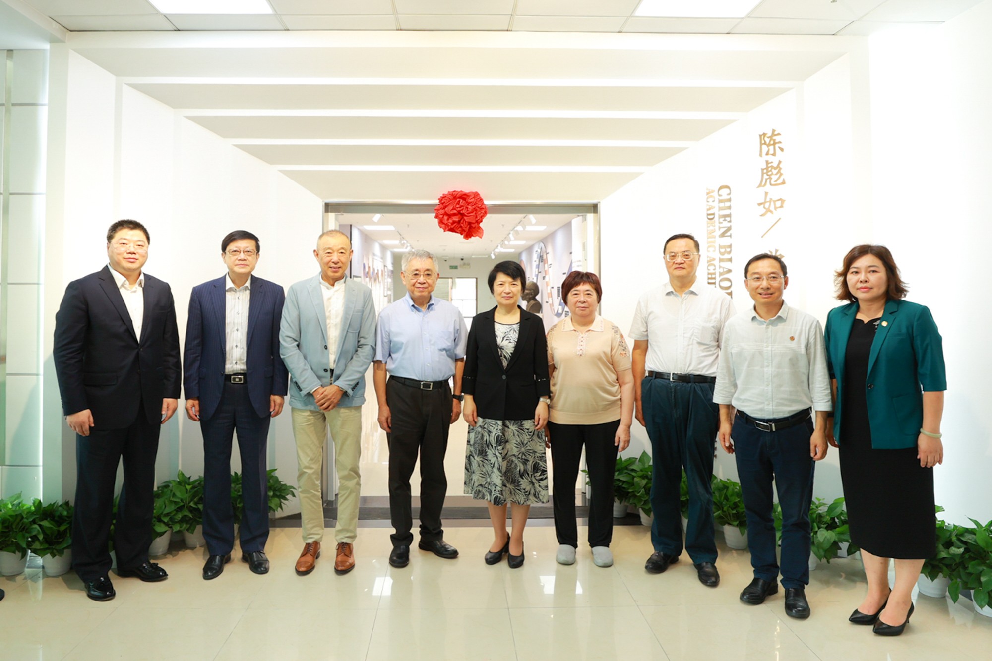 王新奎、梅兵、陈麟辉、斯阳、陈琦伟、连平、岳华、汤亮、陈彪如之女陈韵珂,一同为陈列室揭幕