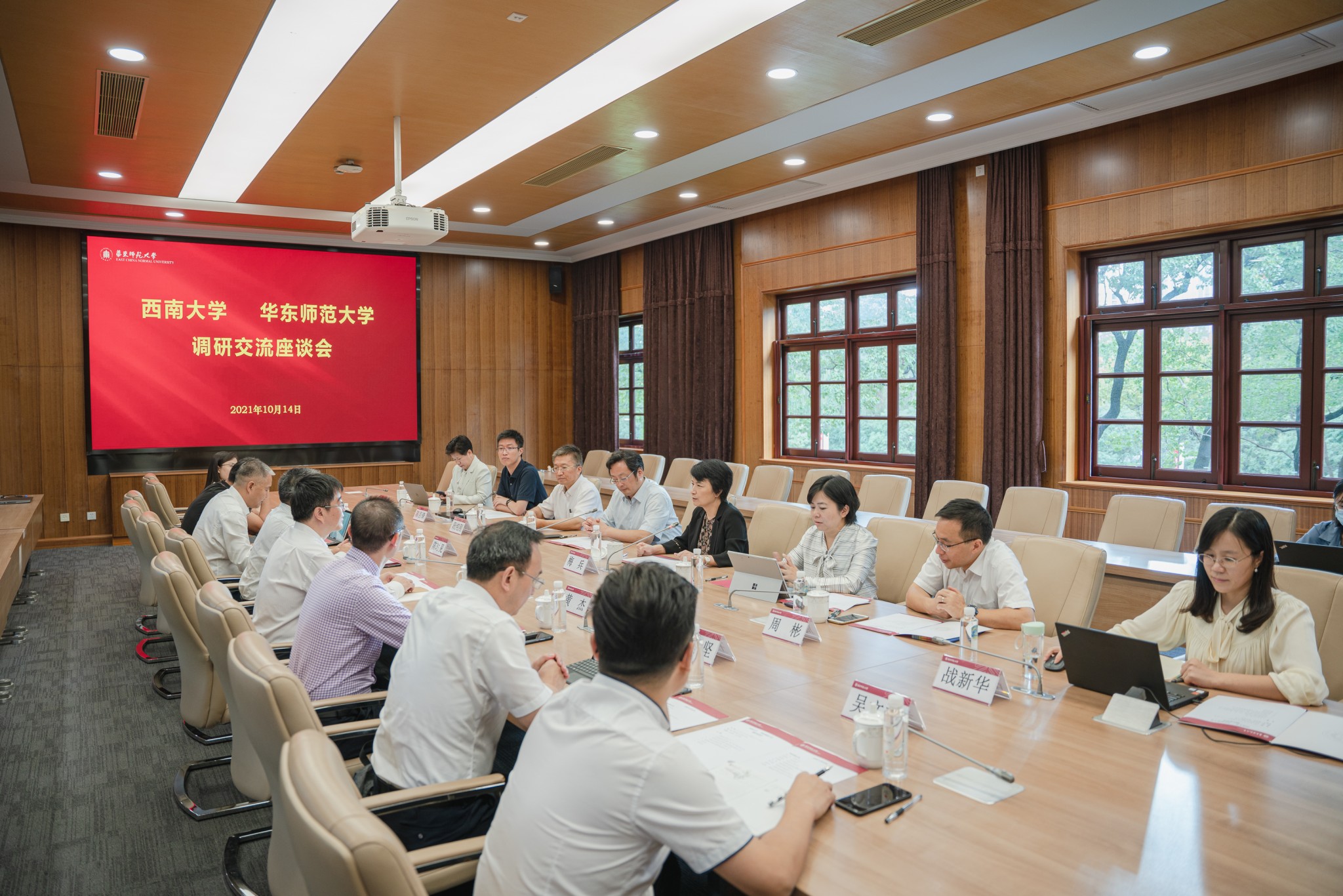 10月14日,西南大学党委书记李旭峰一行来到3245澳门新莆京调研,调研座谈会在普陀校区举行。华东师大党委书记梅兵一行参加调研。会议由华东师大校长助理施国跃主持。