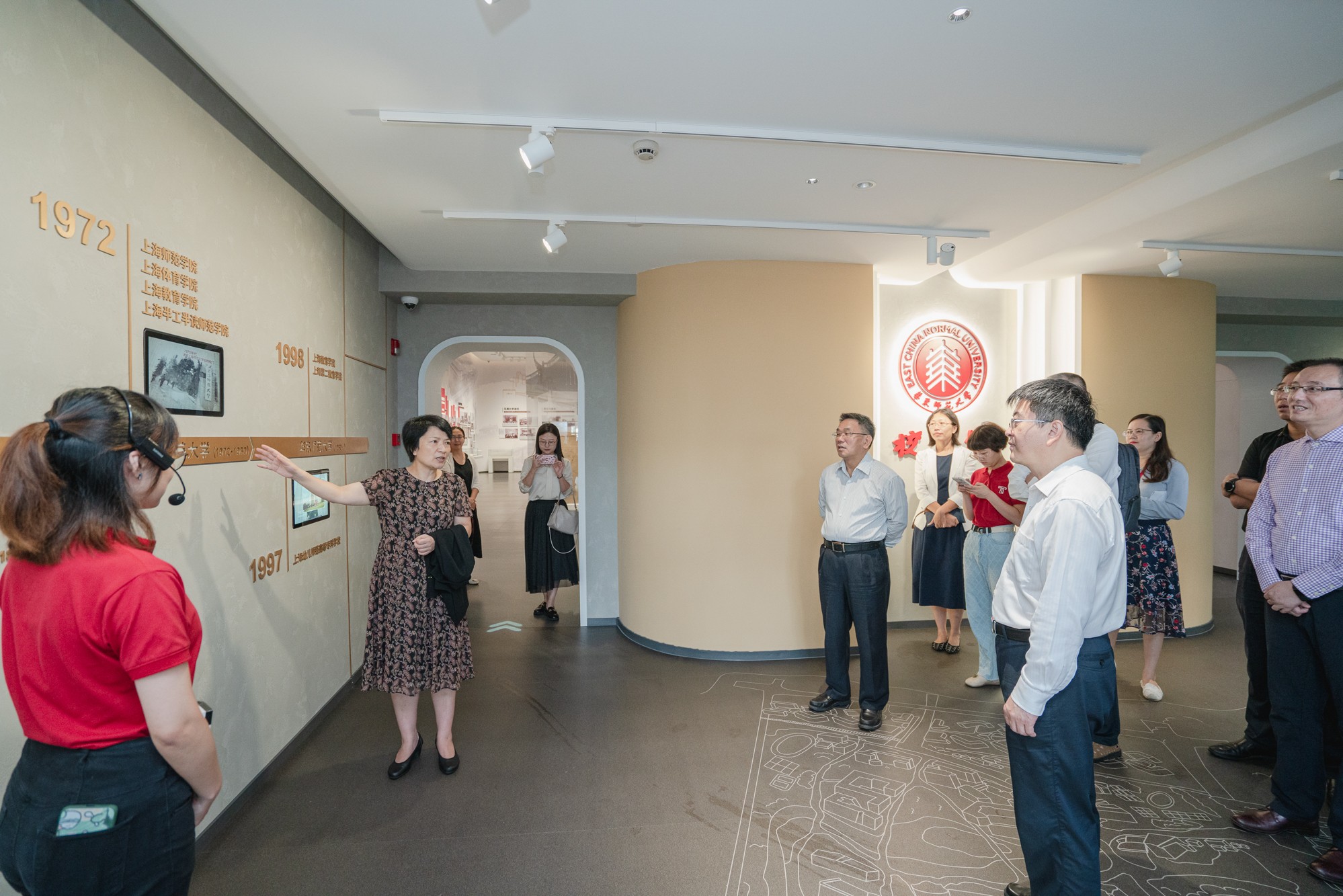 会前,李旭峰一行在梅兵一行的陪同讲解下,参观了华东师大校史馆。