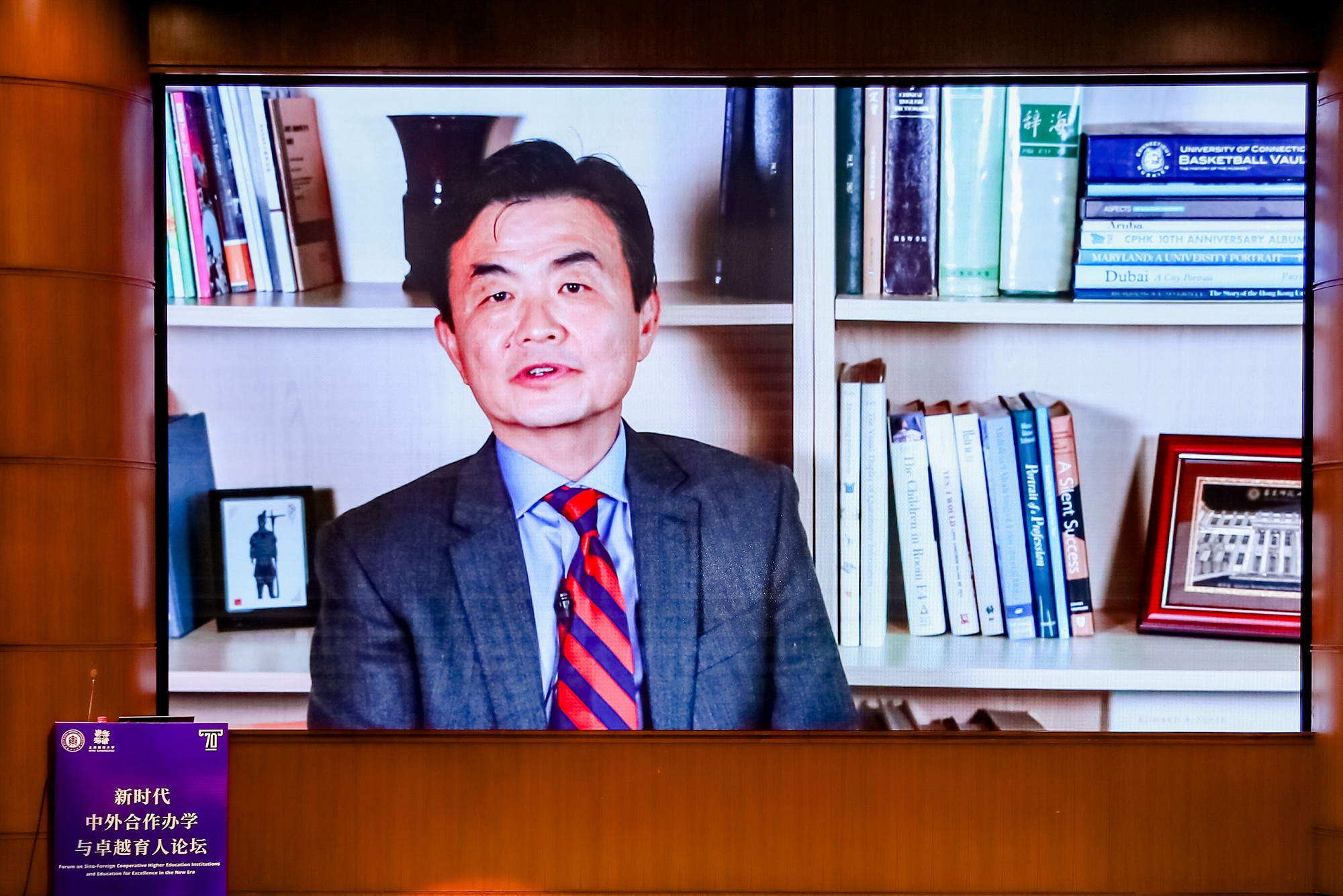 作为联合主办方的上海纽约大学于当晚举行专场学术论坛。北京师范大学-香港浸会大学联合国际学院校长汤涛院士、上海纽约大学校长童世骏围绕“中外合作高校与人类共同价值”这一议题分别做专题报告,旨在为推进新时代教育国际化转型发展指明行动方向、描绘实施蓝图。