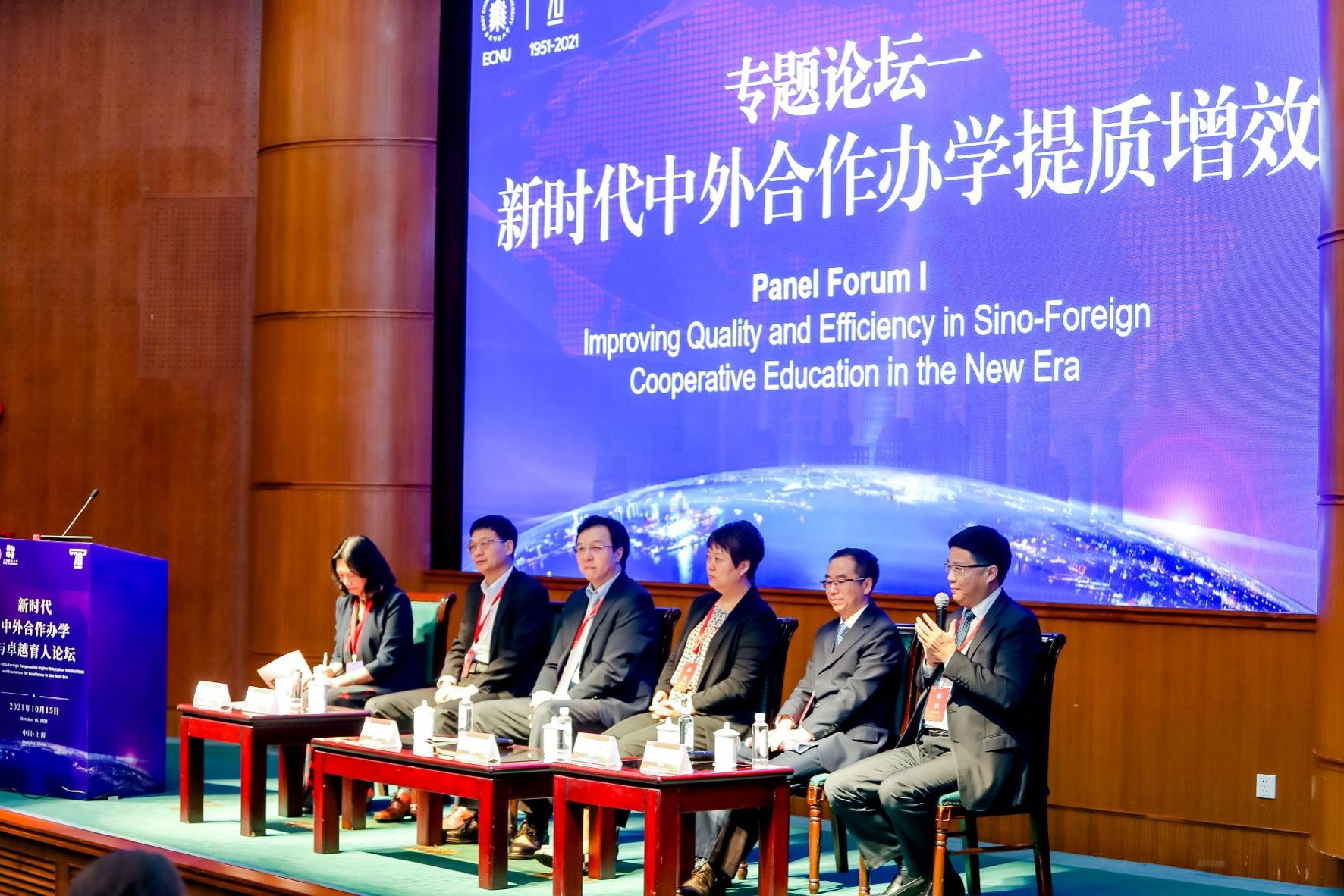 在第一场专题论坛上,何莲珍作了题为《内涵发展塑型未来:浙江大学国际联合学院的实践》的学术报告,并与香港中文大学(深圳)协理副校长朱宝亭、华中师范大学伍伦贡学院院长余新国、南京大学合作与交流处处长李晓蓉、武汉大学国际交流部部长李晓述,以及华东师大-里昂亚欧商学院中方院长何佳讯等回应嘉宾,共同就“新时代中外合作办学提质增效”展开深入探讨。