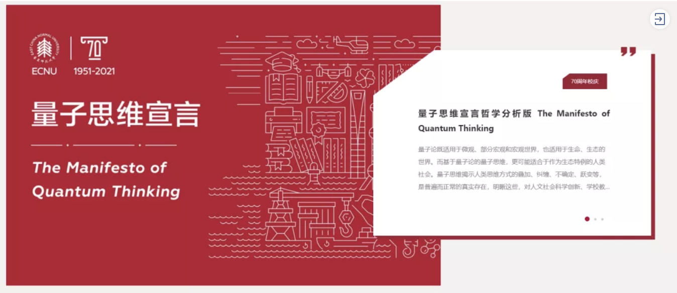 近年来,华东师大大力推进思维导向的通识教育体系建设,汇集来自中文、历史、哲学、数学、物理、生物、地理、心理、化学、教育、政治、计算机、音乐、美术、设计等多个学科的优秀师资,重点打造“人类思维与学科史论”课程群。学校在校庆之际发布《量子思维宣言》,无疑为卓越育人注入了新的动能。
