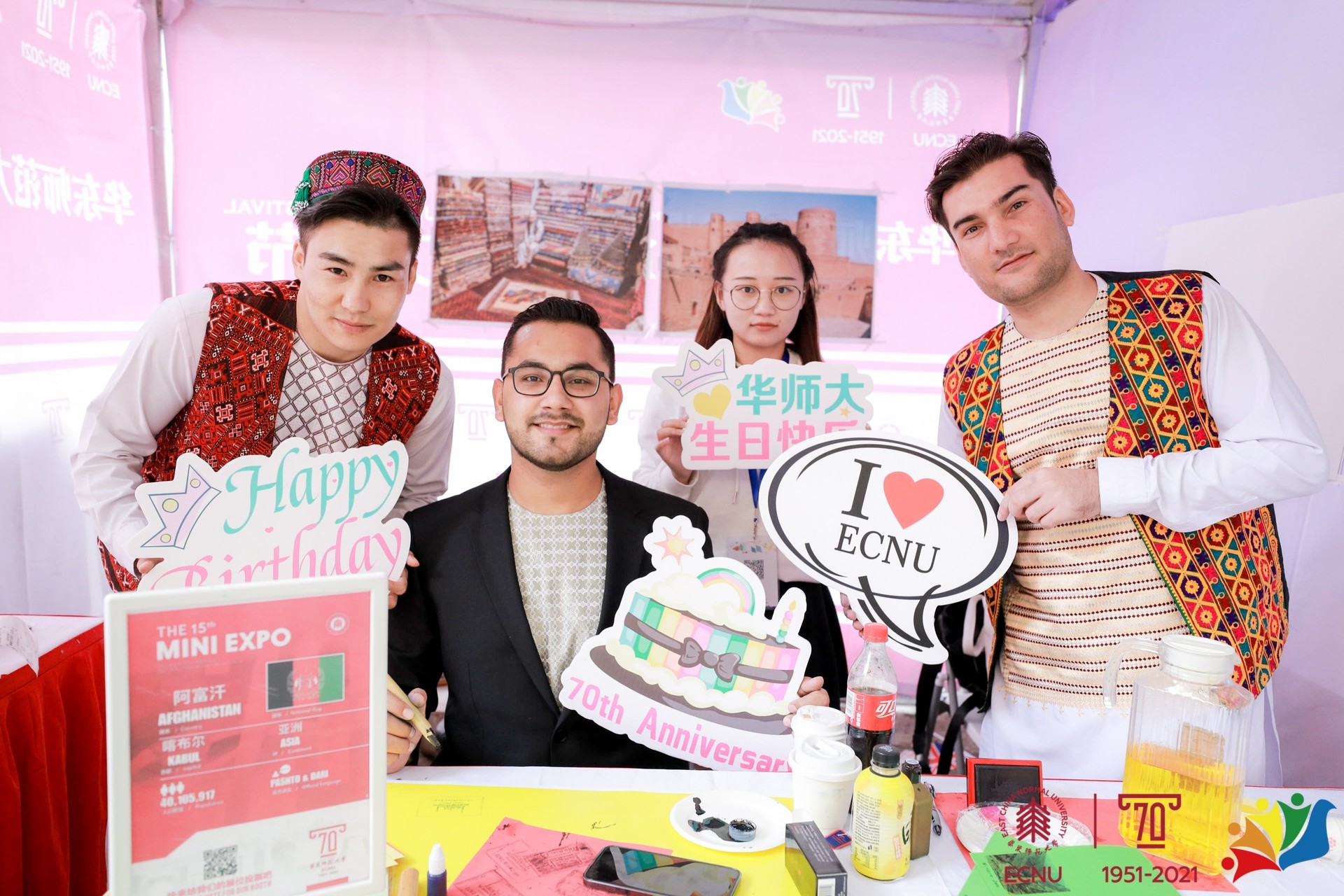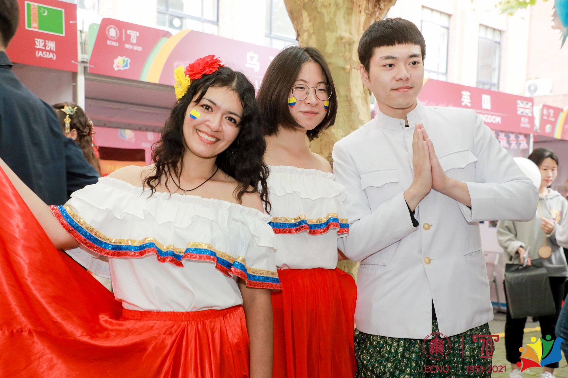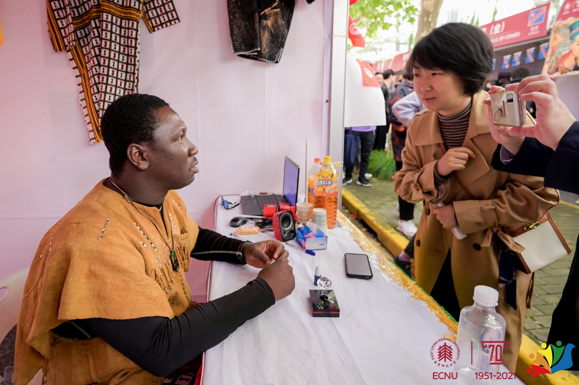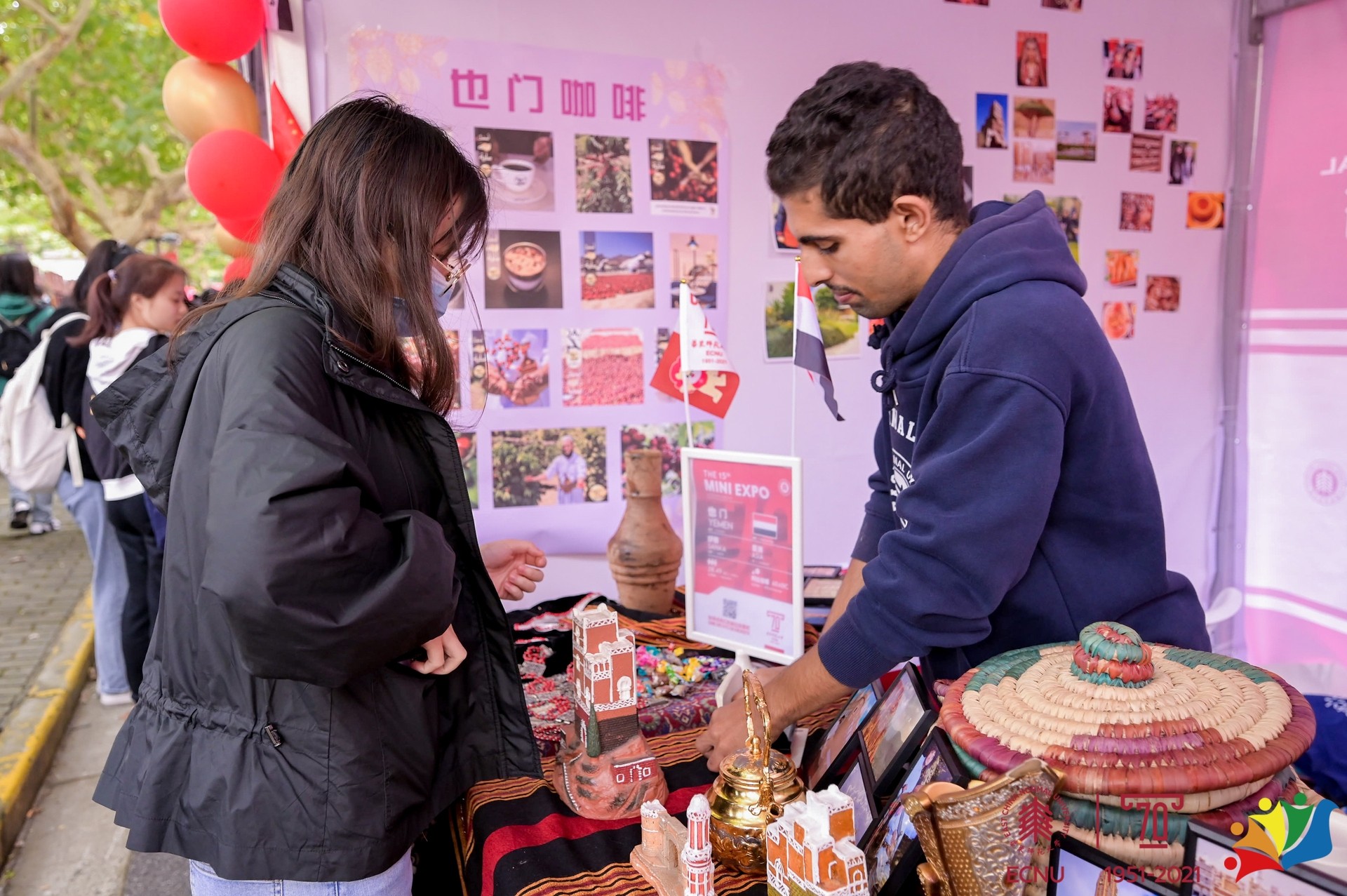 汇集异国美食,博览世界风情。10月17日,华东师大第十五届国际文化节系列活动之“Mini Expo多国风情展”在普陀校区举办,献礼华东师大70周年校庆。来自五大洲40多个国家的国际学生们齐聚丽娃河畔,数千名中外师生通过“线上”“线下”相结合的方式参与其中,共享国际文化嘉年华。