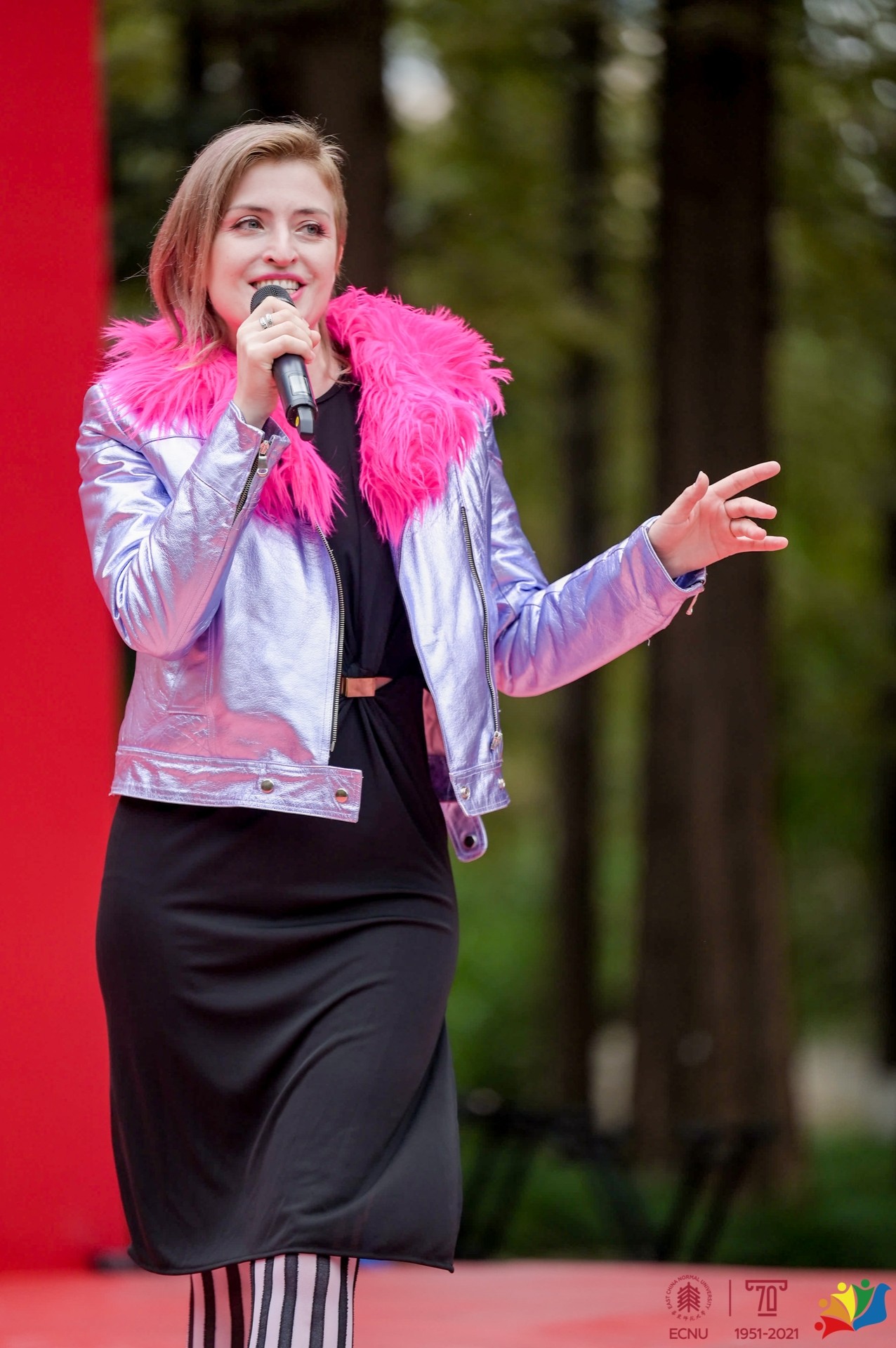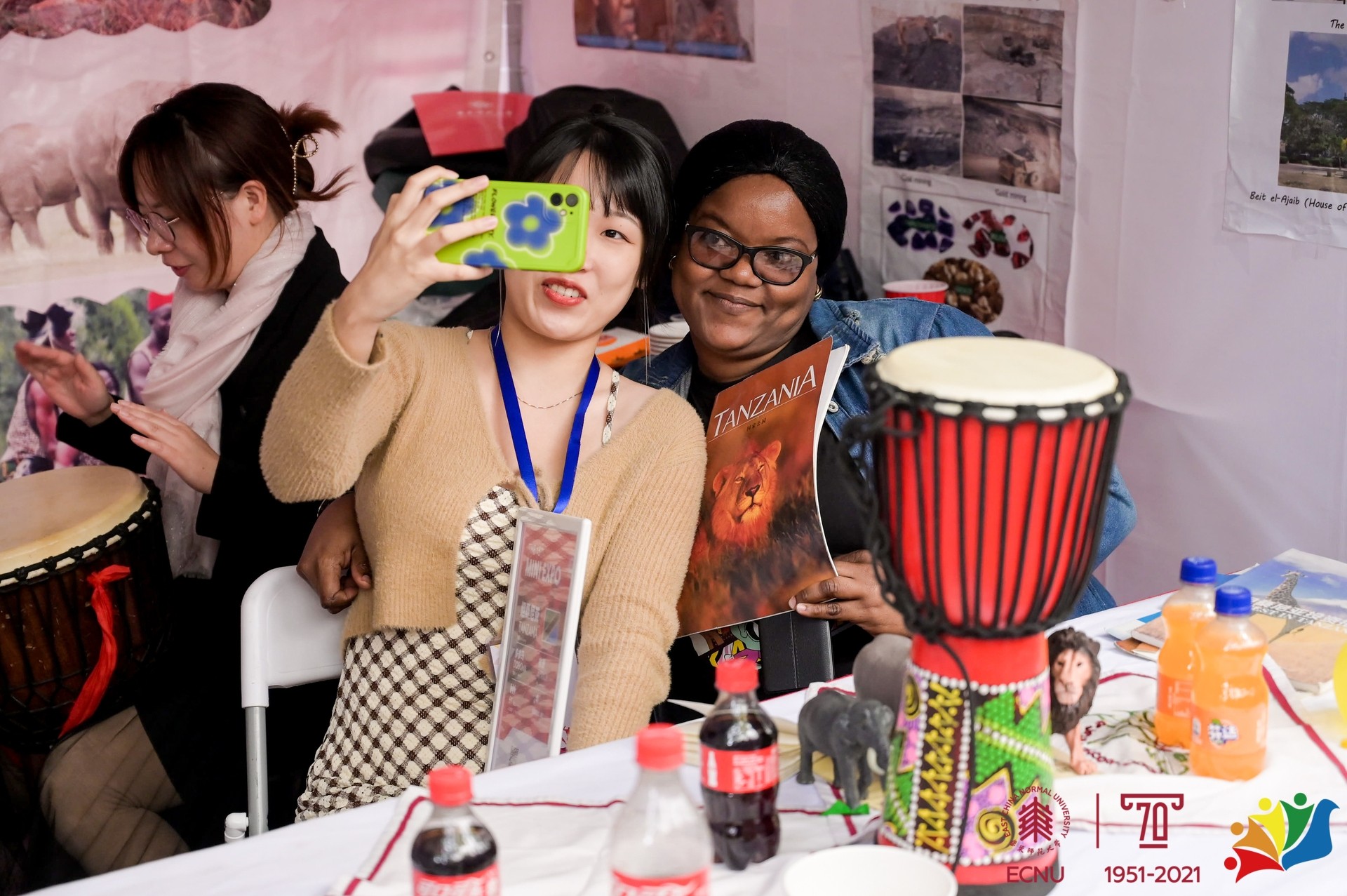 舞台上、展位间,中外学生们一起载歌载舞,观众们也随着韵律舞动起来。“中外一家,携手同行”,迷你博览会充分彰显了华东师大多元文化的魅力与氛围。