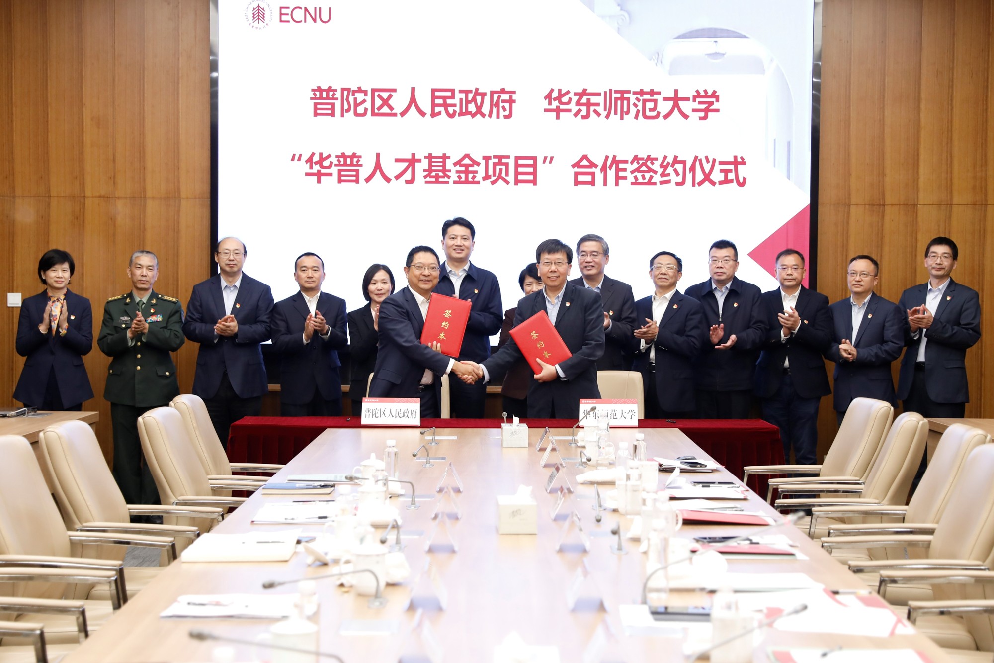 普陀区委书记姜冬冬,区委副书记、代区长肖文高,区委副书记周艳,区委常委、副区长姜爱锋,区委常委、宣传部部长刘东昌,区委常委、武装部部长刘云宏,区委常委、区纪委书记高路;华东师大党委书记梅兵,校长、党委副书记钱旭红,党委副书记朱民、曹友谊,党委常委、副校长孙真荣、周傲英、雷启立、顾红亮出席会议,校长助理吴瑞君、施国跃列席。