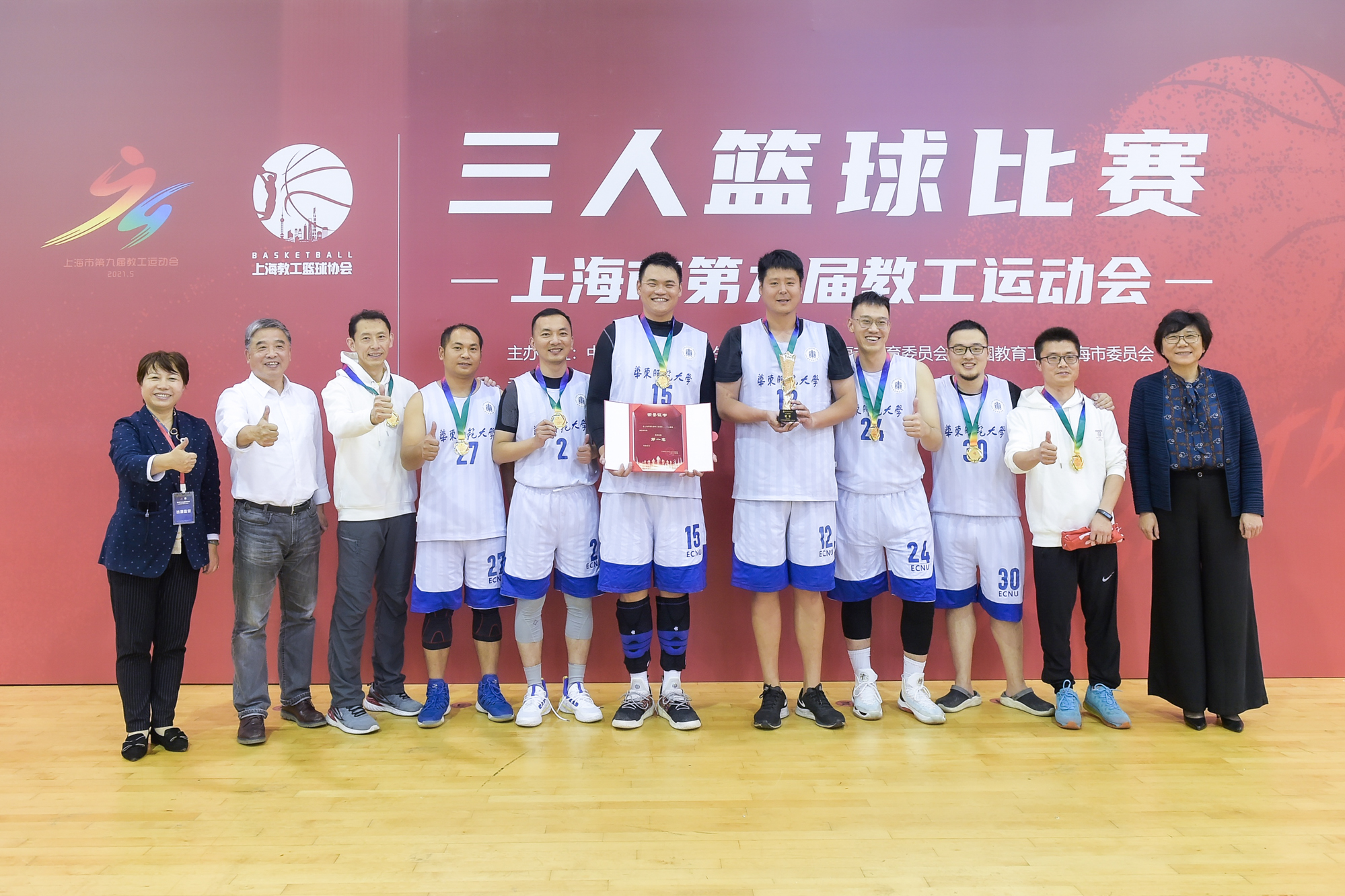 华东师大教工篮球队在10月30日举行的上海市第九届教工运动会男子三人篮球赛中取得A组第一名,勇夺大赛冠军。本次大赛是由中共上海市教育卫生工作委员会,上海市教育委员会,中国教育工会上海市委员会主办的第九届教工运动会的球类赛事之一,由上海教工篮球协会承办。