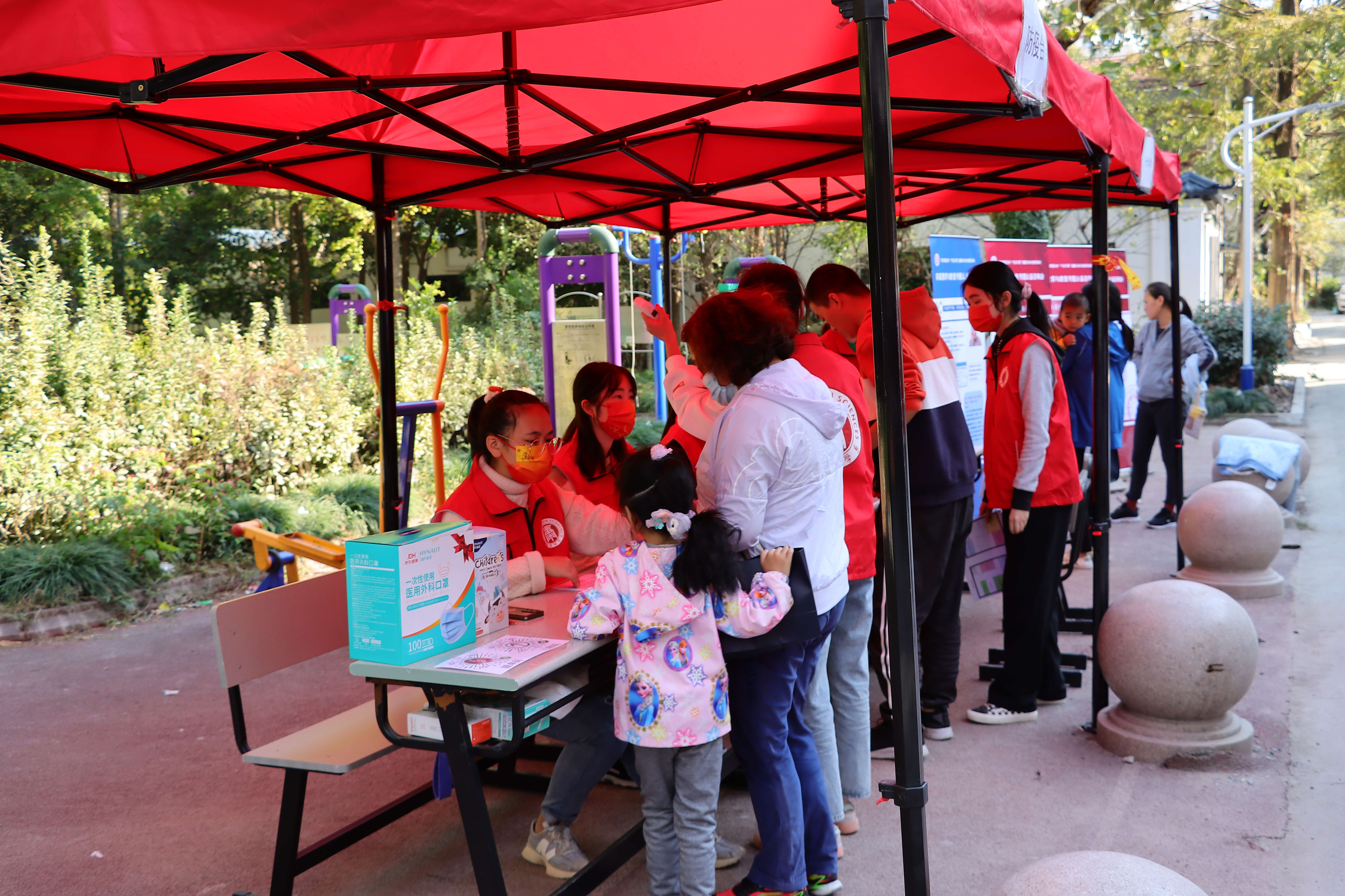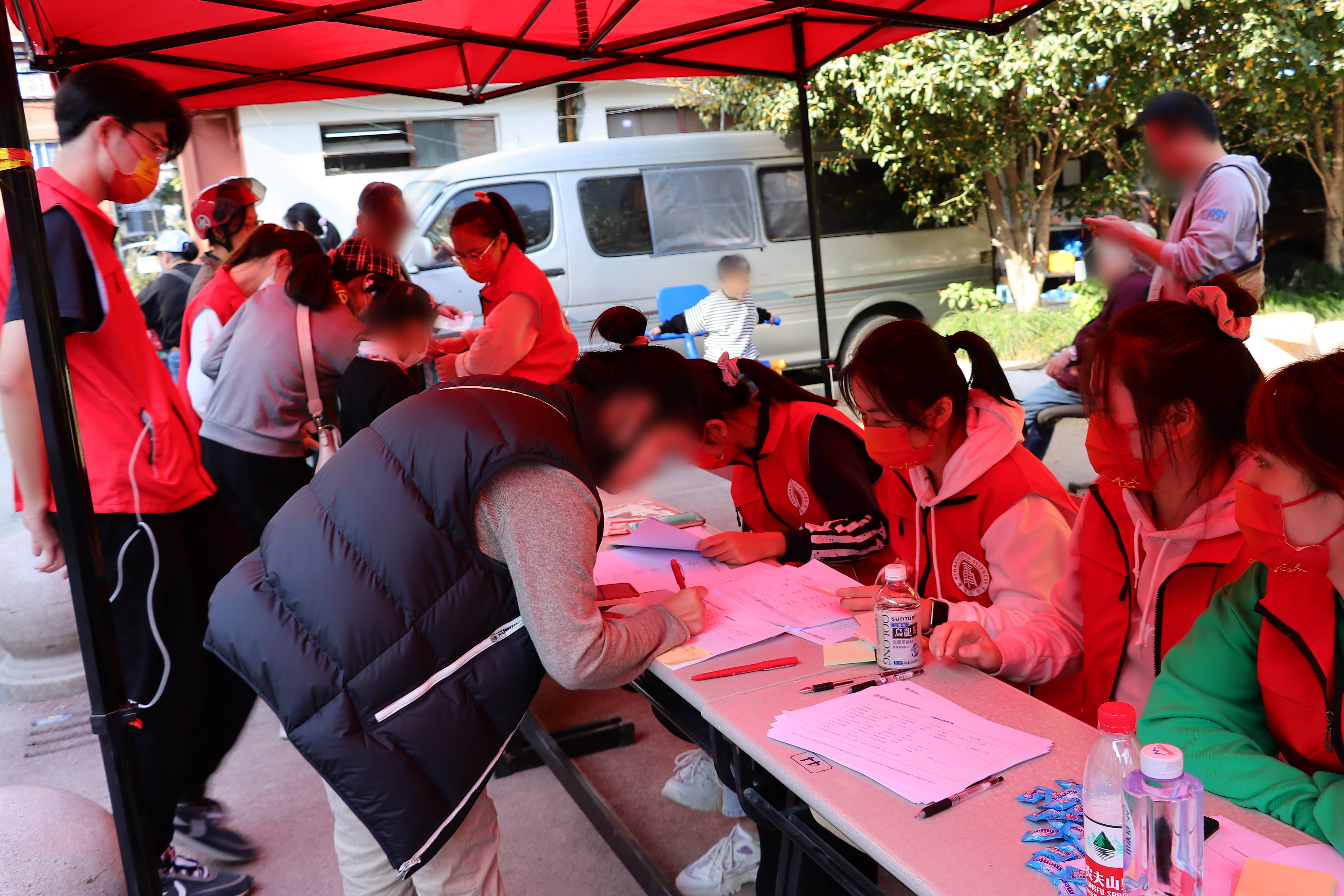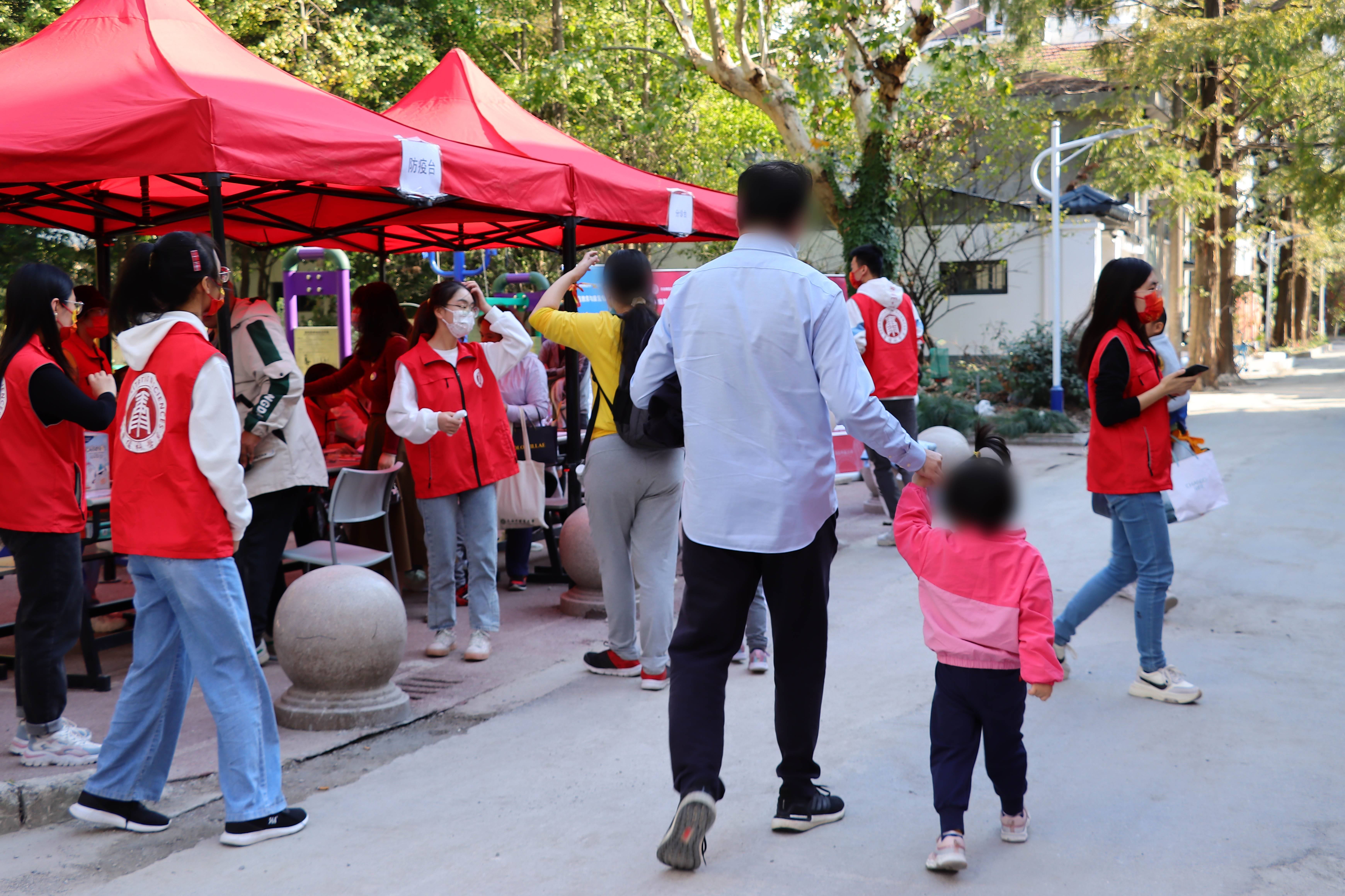 来访者在志愿者引导下进行室外信息登记和确认