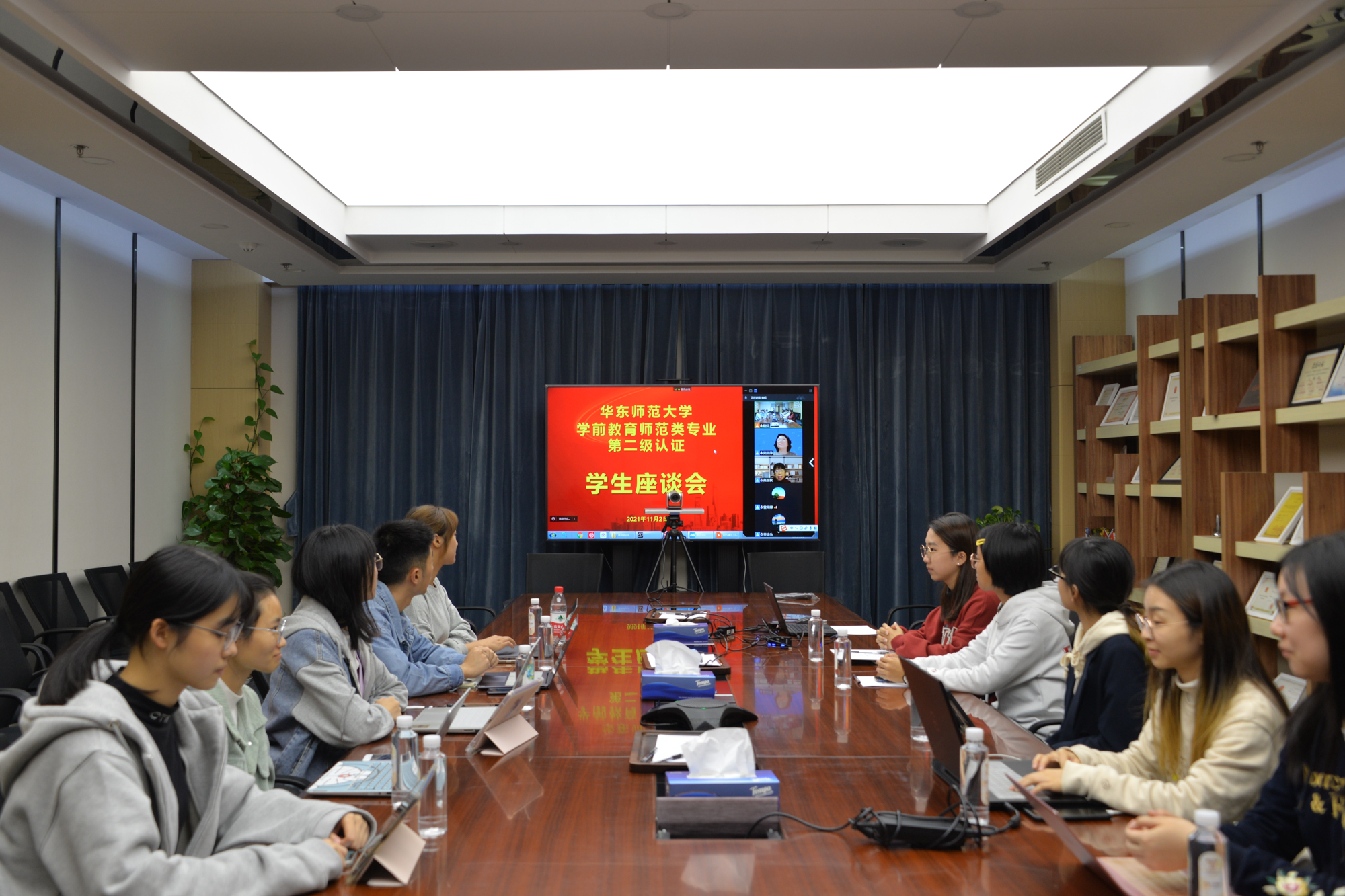 11月2日上午,认证专家组见面会通过线上线下相结合的方式举行。认证专家组全体成员线上参会,华东师大副校长戴立益,党委学生(研究生)工作部、教务处、招生办公室等相关职能部门负责人,教育学部党委书记房建军、党委常务副书记黄瑾、教育学部常务副主任荀渊等学部党政班子成员,学前教育学系教工党支部书记左志宏、副系主任苏雪云以及全体教师线下出席本次见面会。