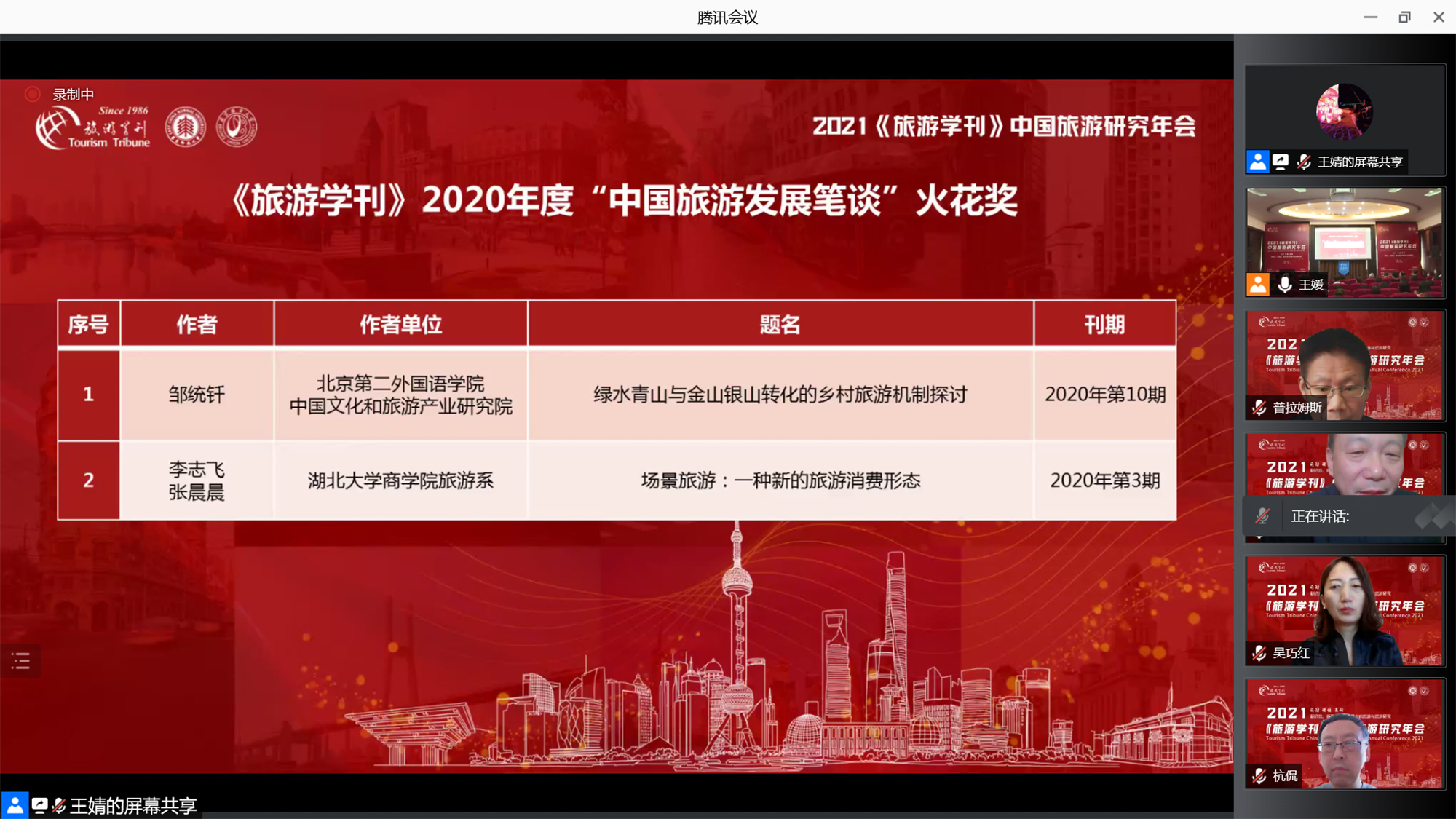 《旅游学刊》2020年度“中国旅游发展笔谈”火花奖表彰