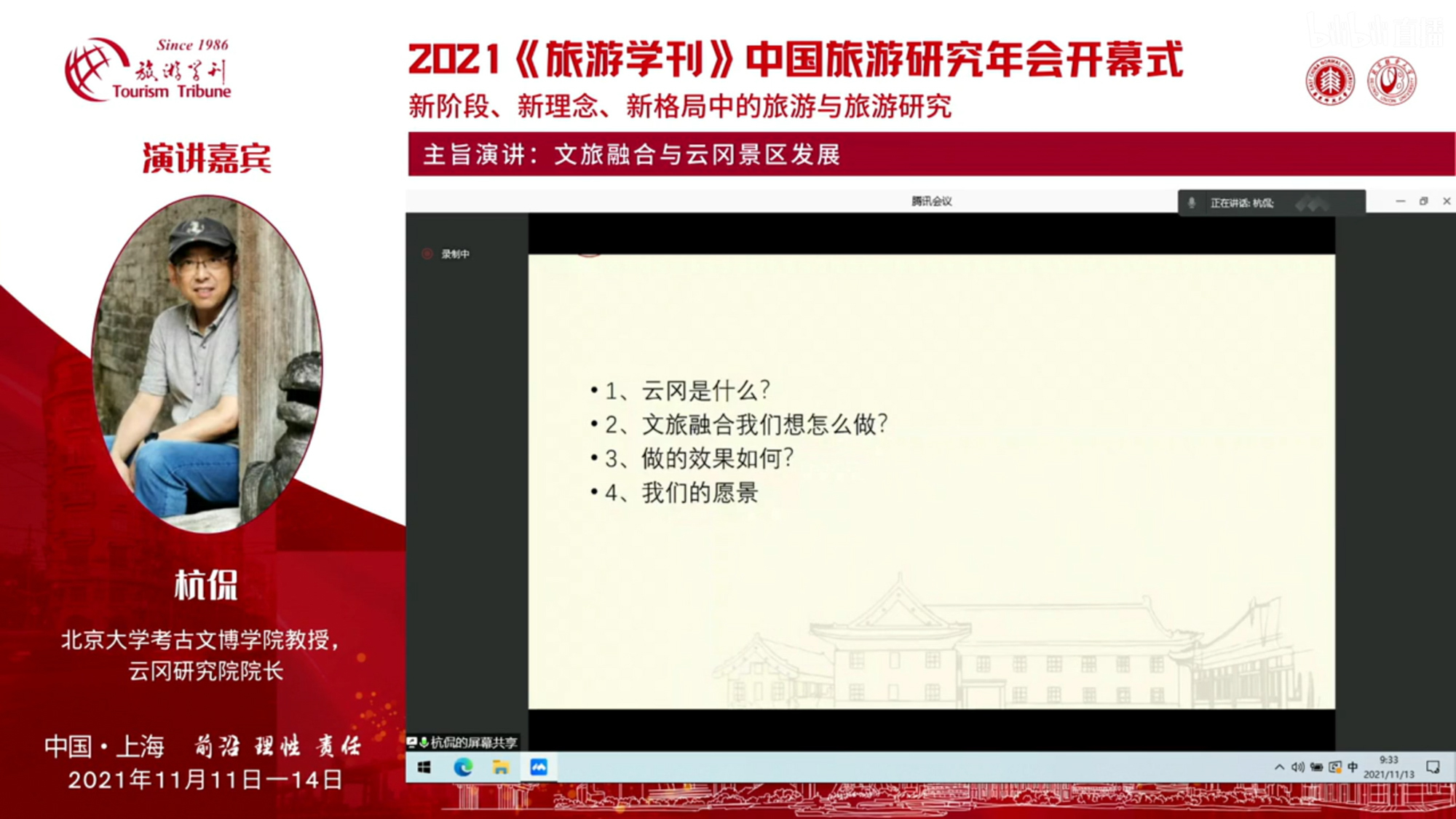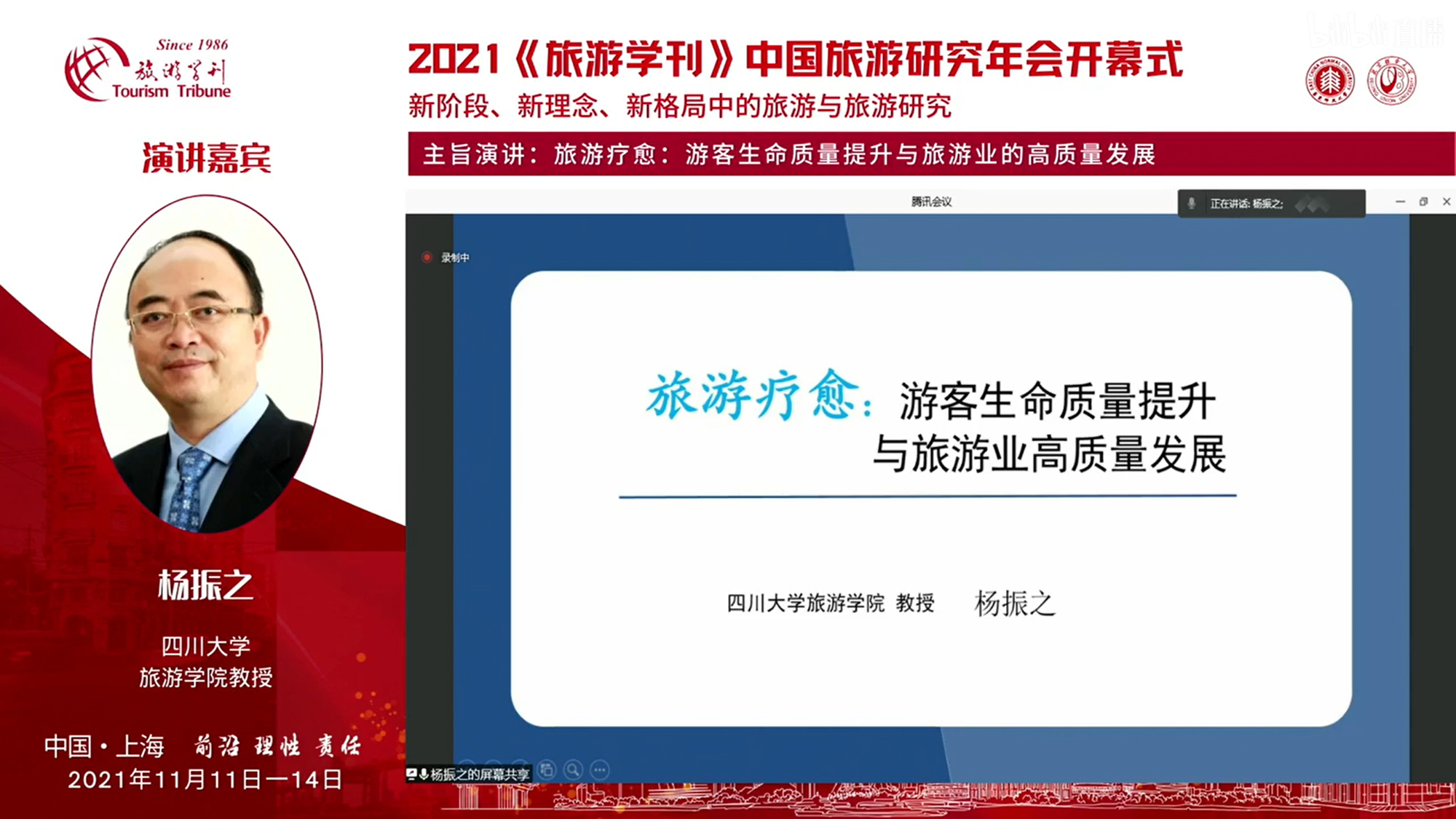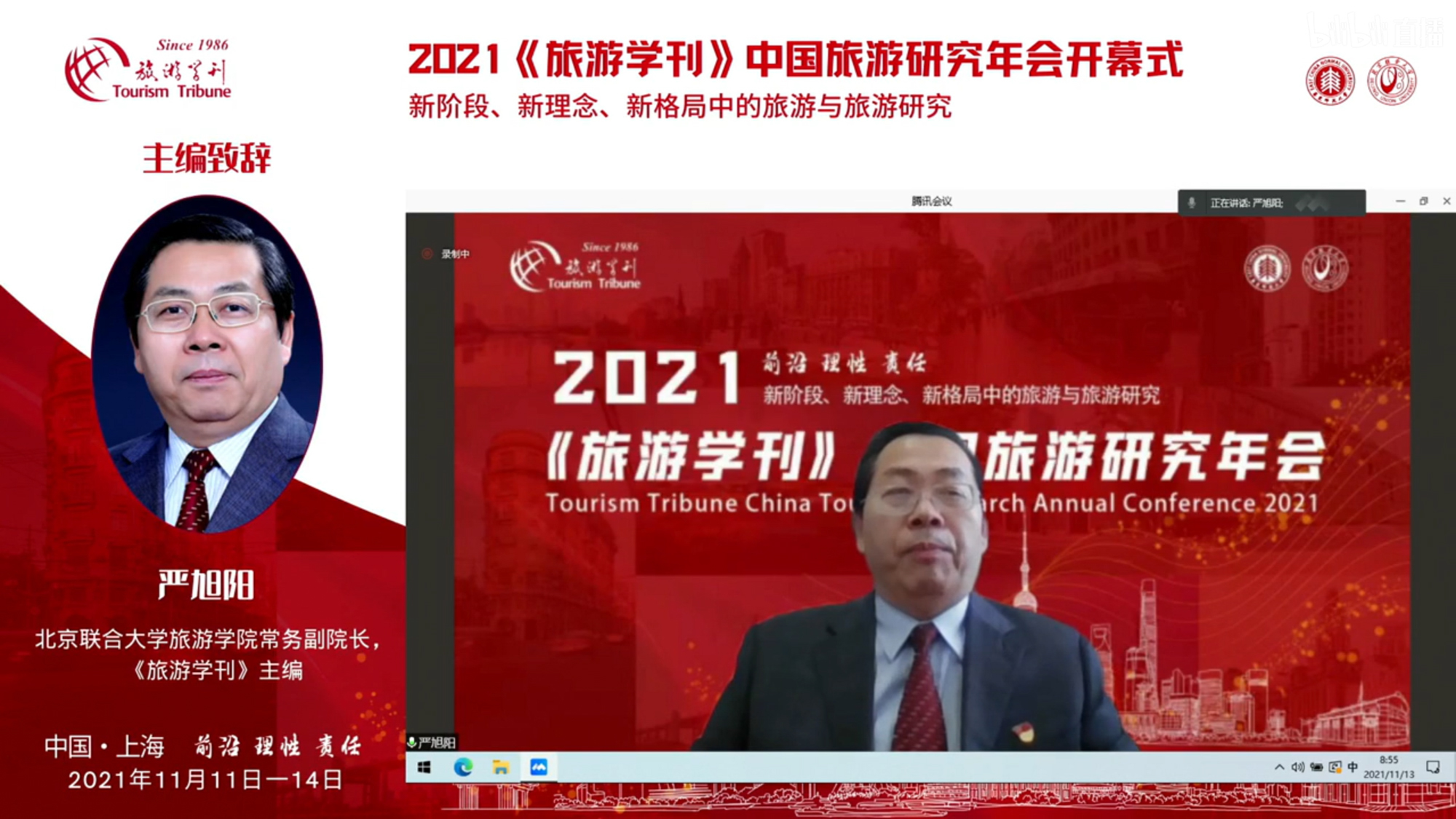 由3245澳门新莆京和北京联合大学主办,3245澳门新莆京经济与管理学部、北京联合大学旅游学院和《旅游学刊》编辑部承办,上海市文化和旅游局指导,绿地旅游研究院协办的“2021《旅游学刊》中国旅游研究年会”于11月13日在上海开幕。本届年会首次采用线上线下同步举办,三万余名旅游学界和业界人士齐聚云端参加此次学术盛会。会议以“新阶段、新理念、新格局中的旅游与旅游研究”为主题,讨论新时代背景下旅游研究的前沿理论与我国旅游产业实践的焦点问题,以期促成具有引领性的中国旅游研究成果,探索面向未来的中国旅游产业与旅游学科发展之路,凝聚旅游学人之力,服务国家和社会的发展。