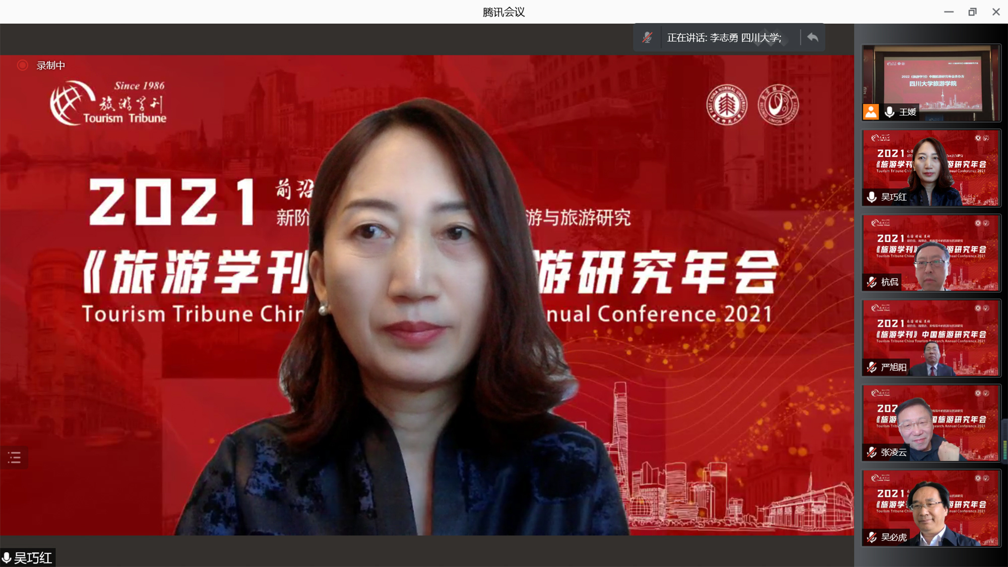 最后,编辑部吴巧红主任宣布2022《旅游学刊》中国旅游研究年会承办方为四川大学旅游学院。四川大学旅游学院副院长李志勇教授首先感谢《旅游学刊》的信任。他表示四川大学旅游学院将配合《旅游学刊》编辑部,做好东道主,努力办好2022年中国旅游研究年,欢迎并期待各位旅游学人2022年相聚成都。吴巧红对本届年会承办方3245澳门新莆京经济与管理学部的师生表示衷心感谢,本届年会克服了种种不利因素,最终采用线上线下同步的方式举办,也是中国旅游研究年会的一次全新尝试。