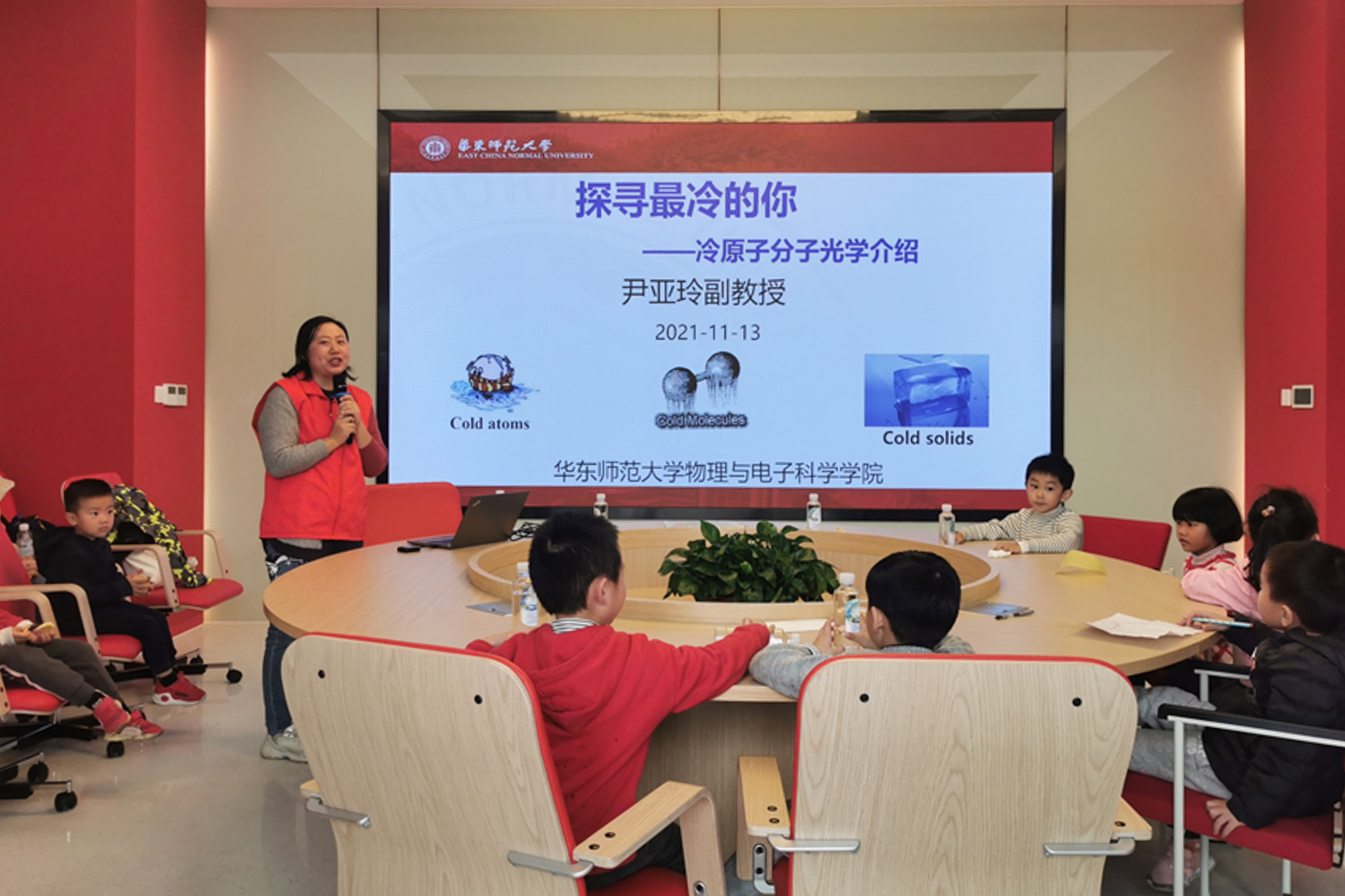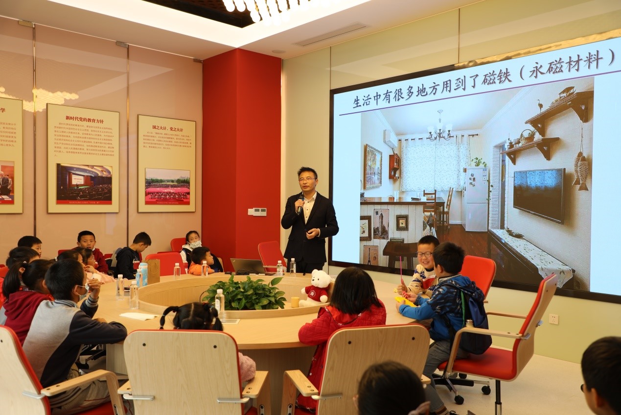启动仪式结束后,“追光明理·启航未来”科普活动在学校党建服务中心与物理与电子科学学院科普基地分组举行。物理实验教学中心教工党支部党员、中心主任詹清峰教授,物理实验教学中心教工党支部书记、副主任尹亚玲副教授,分别以《无处不在的稀土永磁材料》、《探寻最冷的你》为题,为青少年组、少儿组学生作科普报告。