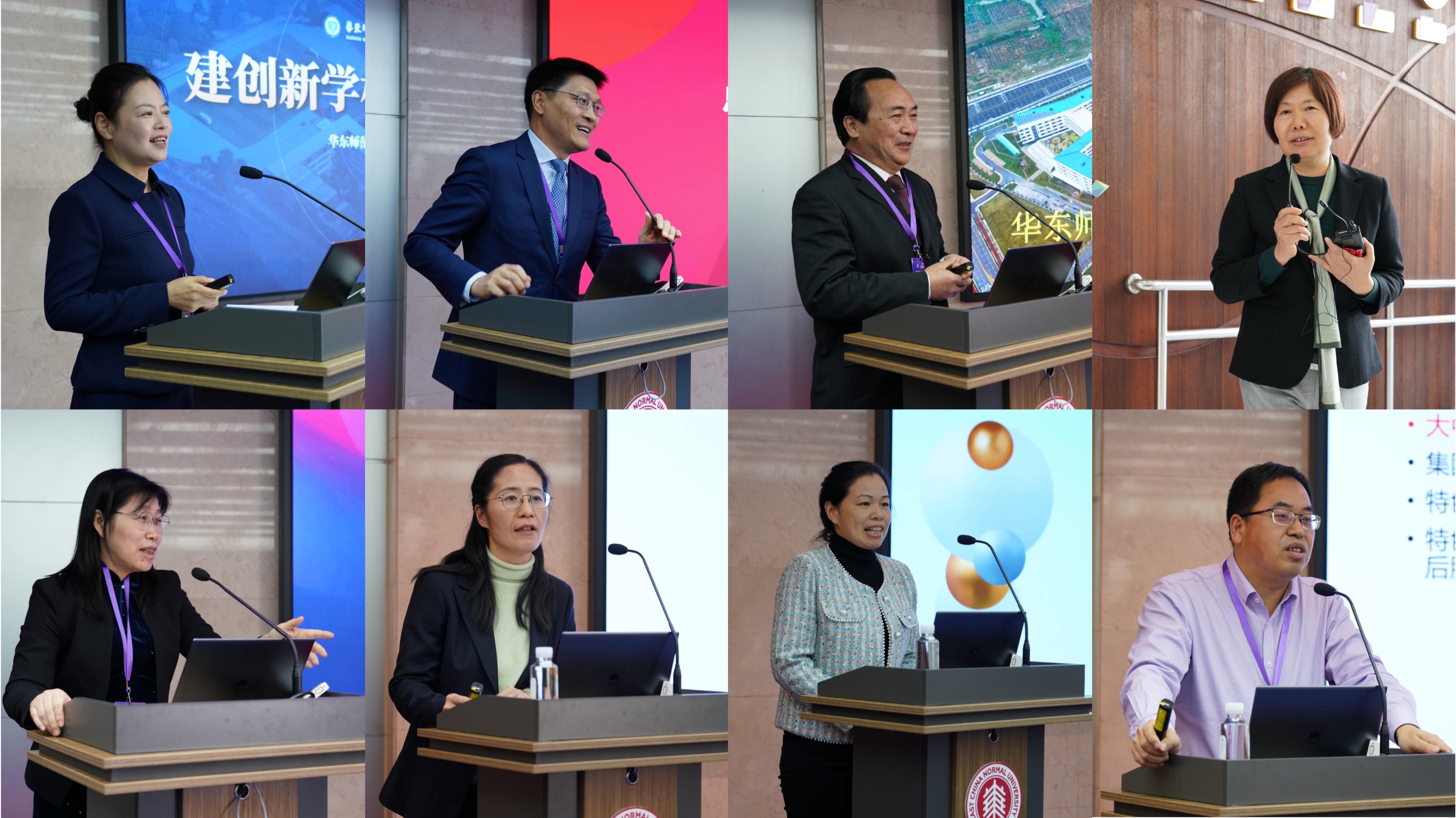 附属学校校长代表周雪红、邱超、胡佳、邹淑君为校园长们分享办学成果及经验,教师教育学院院长周彬及教育部中学校长培训中心副主任刘莉莉进行点评并和校长们进行交流。华东师大闵行紫竹基础教育园区的徐臻、蒋方叶、施洪亮三位校园长,则深度聚焦大中小幼一体化的家校社合作育人、教研活动的开展以及特色课程和特色项目的建设作了经验分享。